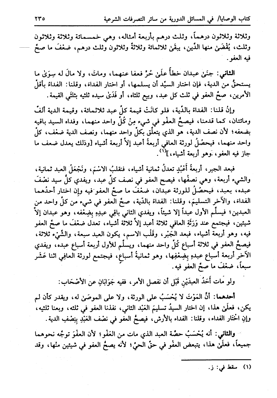 وثلاثة وثلاثون درهماً، وثلث درهم بأربعة أمثاله، وهي خمسمائة وثلاثة وثلاثون وثلث، يُقْضَى منها الدَّين، يبقَى ثلاثمائة وثلاثةٌ وثلاثون وثلث درهم، ضعْفَ ما صحَّ فيه العفو.