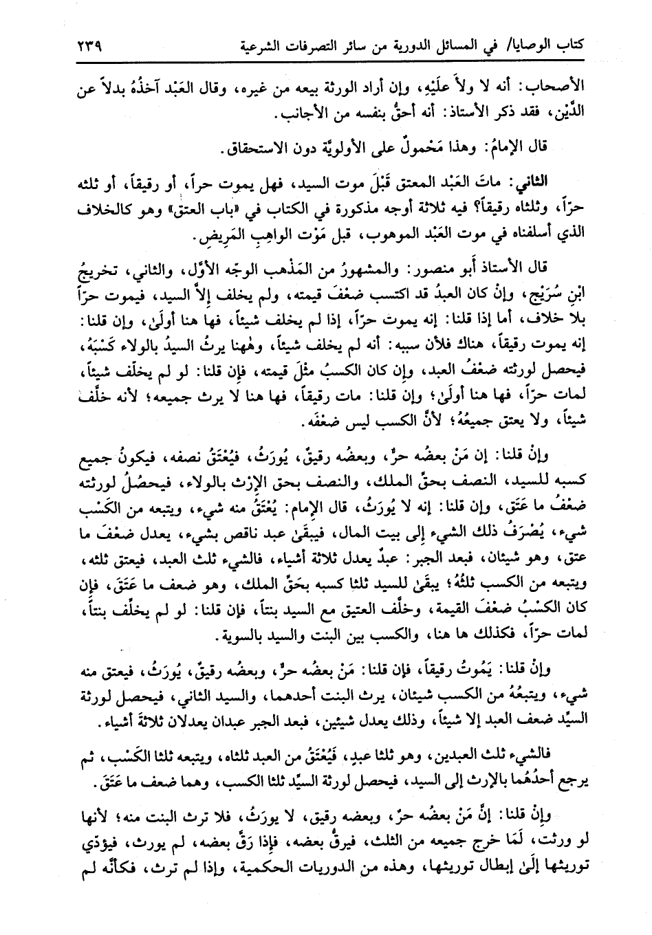 قال الأستاذ أَبو منصور: والمشهورُ من المَذْهب الوجه الأوَّل، والثاني، تخريجُ ابْنِ سُرَيْج، وإنْ كان العبدُ قد اكتسب ضعْفَ قيمته، ولم يخلف إِلاَّ السيد، فيموت حرّاً بلا خلاف، أما إذا قلنا: إنه يموت حرّاً، إذا لم يخلف شيئاً، فهاهنا أولَى، وإن قلنا: إنه يموت رقيقاً، هناك فلأن سببه: أنه لم يخلف شيئاً، وههنا يرثُ السيدُ بالولاء كَسْبَهُ، فيحصل لورثته ضعْفُ العبد، وإِن كان الكسبُ مثْلَ قيمته، فإن قلنا: لو لم يخلّف شيئاً، لمات حرّاً، فهاهنا أولَى؛ وإن قلنا: مات رقيقاً، فهاهنا لا يرث جميعه؛ لأنه خلَّف شيئاً، ولا يعتق جميعُهُ؛ لأنَّ الكسب ليس ضعْفَه.