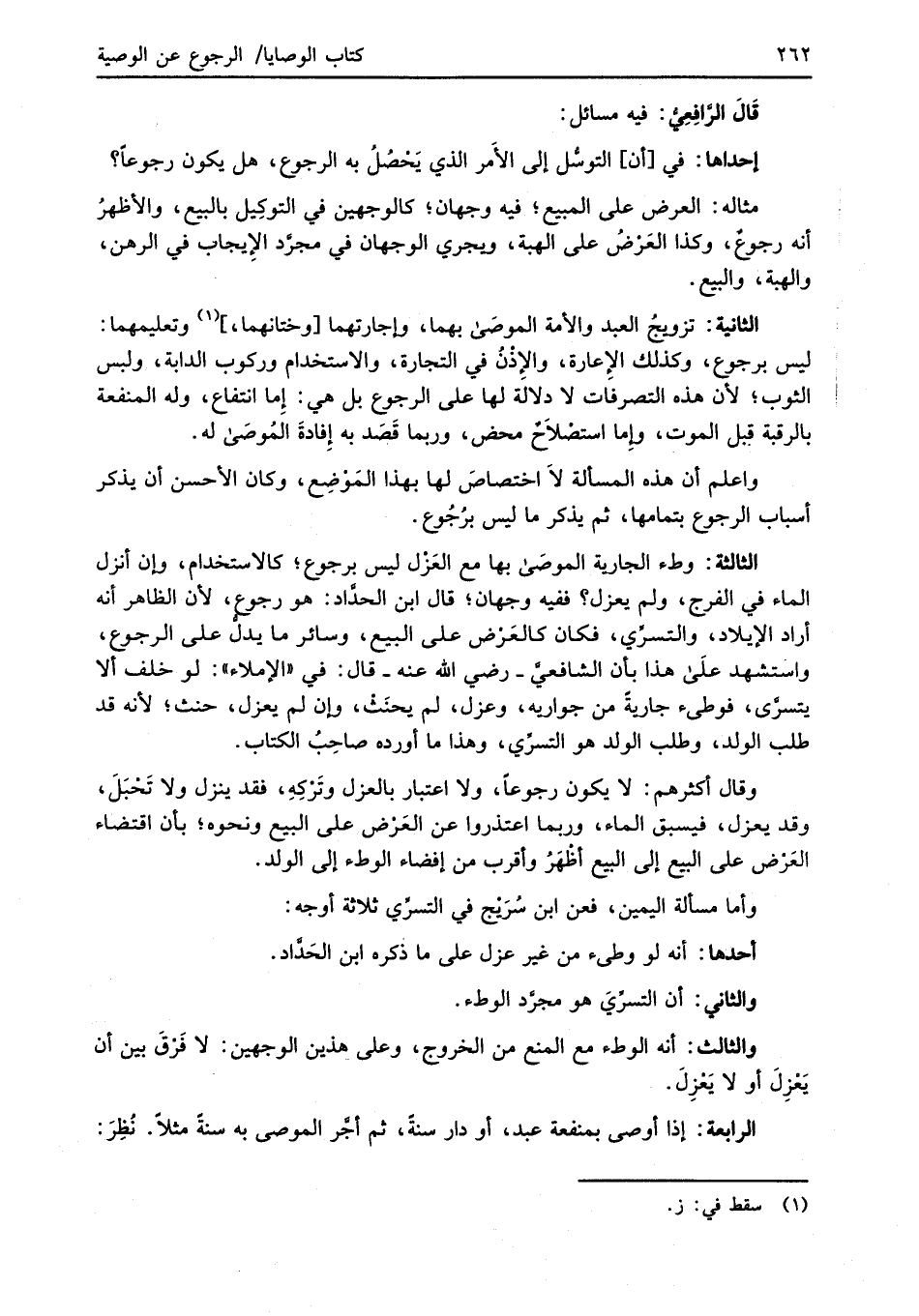 واعلم أن هذه المسألة لا اختصاصَ لها بهذا المَوْضِع، وكان الأحسن أن يذكر أسباب الرجوع بتمامها، ثم يذكر ما ليس برُجُوع.