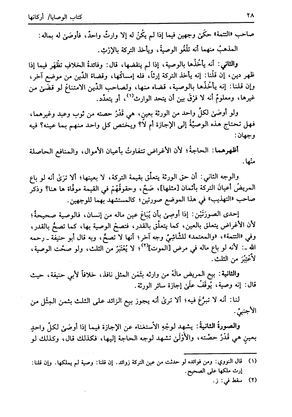 (¬1) قال النووي: ومن فوائده لو حدثت من عين التركة زوائد. إن قلنا: وصية لم يملكها. وإن قلنا: إرث ملكها على الصحيح.