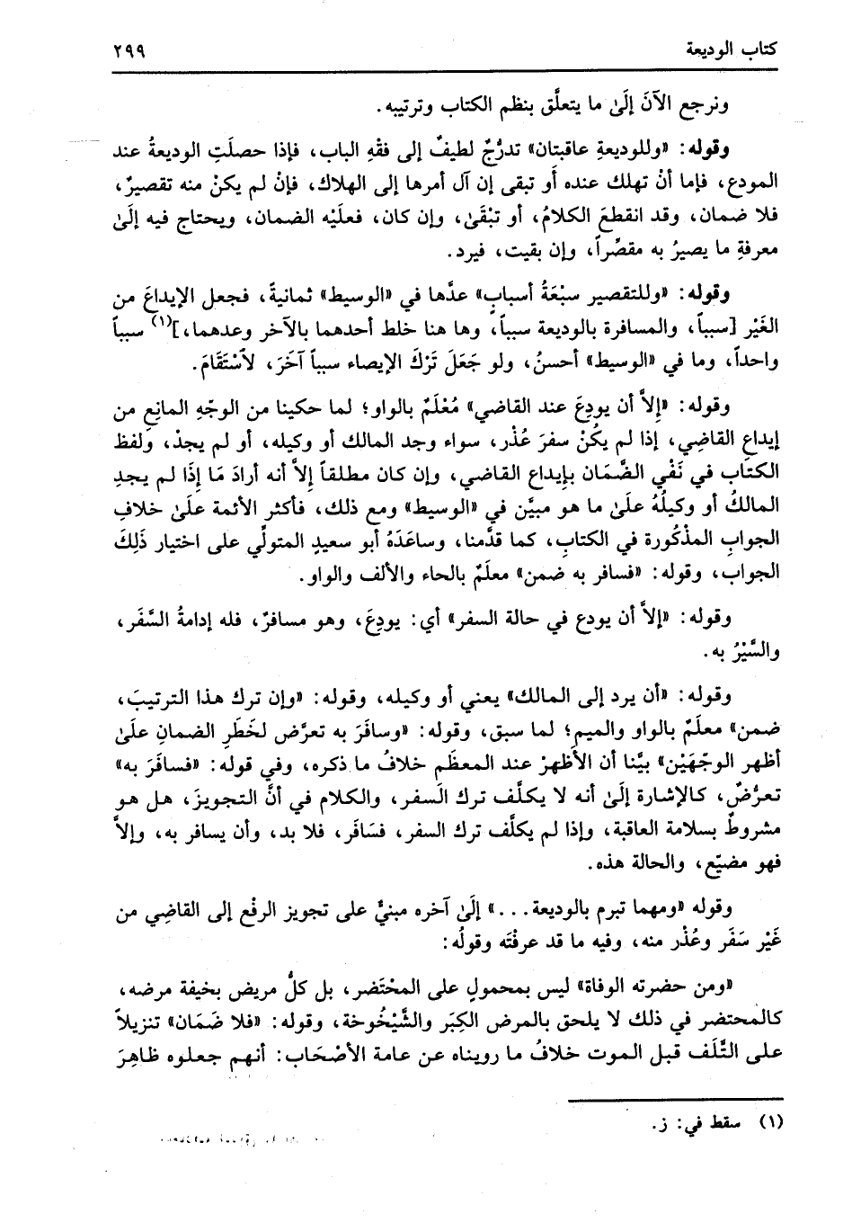 وقوله: "وللتقصير سبْعَةُ أسبابٍ" عدَّها في "الوسيط" ثمانيةً، فجعل الإيداعَ من الغَيْر [سبباً، والمسافرة بالوديعة سبباً، وهاهنا خلط أحدهما بالآخر وعدهما،] (¬1) سبباً واحداً، وما في "الوسيط" أحسنُ، ولو جَعَلَ تَرْكَ الإيصاء سبباً آخَرَ، لاسْتَقَامَ.