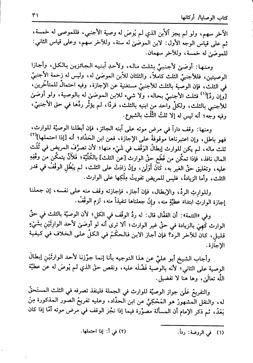 وأجاب الشيخ أبو عليٍّ عن هذا التوجيه بأنا إنَّما جوَّزنا لأحد الوارثَيْنِ إبطالَ الوصية على الثاني؛ لأنه بالوصية فَضَّلَه عليه، ونقص حقّ الذي لم يُوصَ له عن عطيَّة الله تعالَى، وهاهنا لا تفضيل.