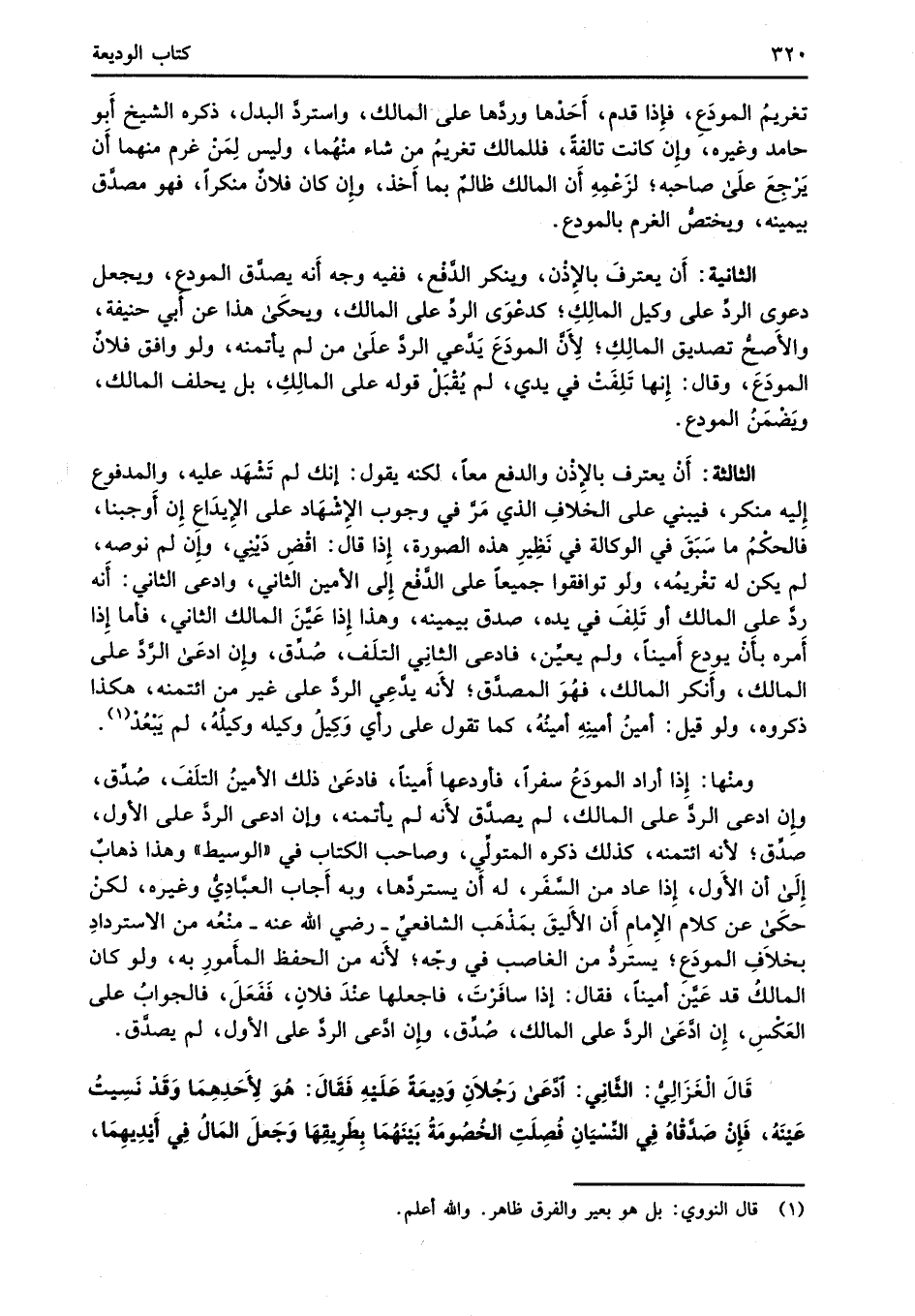 الثالثة: أنْ يعترف بالإذْن والدفع معاً، لكنه يقول: إنك لم تَشْهَد عليه، والمدفوع إِليه منكر، فيبني على الخَلافِ الذي مَرَّ في وجوب الإِشْهَاد على الاِيدَاعِ إِن أَوجبنا، فالحكْمُ ما سَبَقَ في الوكالة في نَظِيرِ هذه الصورة، إِذا قال: اقْضِ دَيْنِي، وإِن لم نوصه، لم يكن له تغْريمُه، ولو توافقوا جميعاً على الدَّفْع إِلى الأمين الثاني، وادعى الثاني: أَنه ردَّ على المالك أو تَلِفَ في يده، صدق بيمينه، وهذا إِذا عَيَّنَ المالك الثاني، فأما إِذا أَمره بأنْ يودع أَميناً، ولم يعيِّن، فادعى الثانِي التلَف، صُدِّق، وإِن ادعَى الرَّدَّ على المالك، وأَنكر المالك، فهُوَ المصدَّق؛ لأَنه يدَّعِي الردَّ على غير من ائتمنه، هكذا ذكروه، ولو قيل: أمينُ أمينِهِ أمينُةُ، كما تقول على رأي وَكِيلُ وكيله وكيلُهُ، لم يَبْعُدْ (¬1).