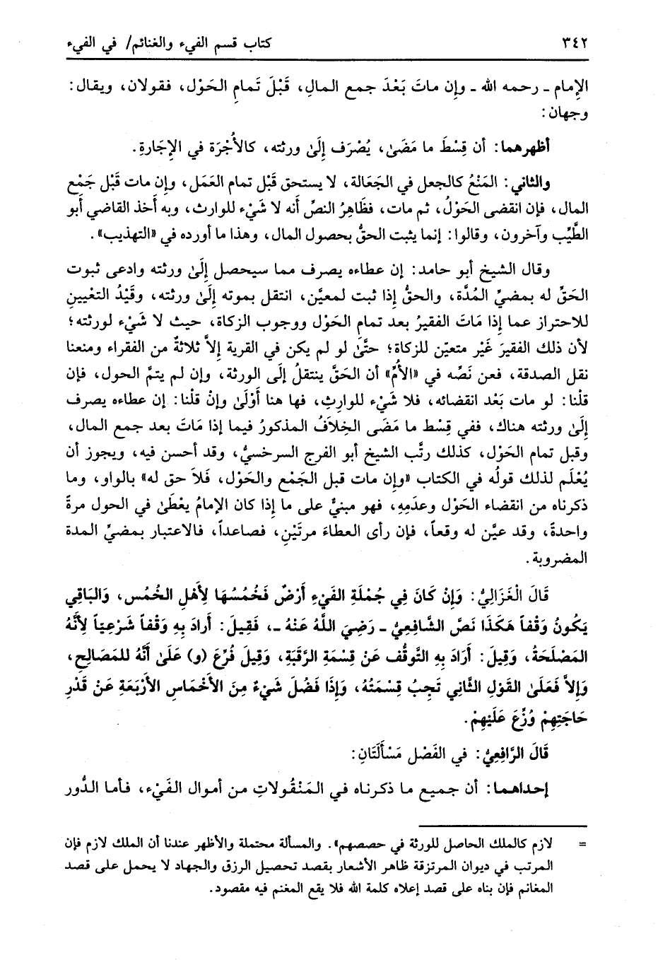 الإمام -رحمه الله- وإِن ماتَ بَعْدَ جمع المالِ، قَبْلَ تَمامِ الحَوْل، فقولان، ويقال: وجهان: