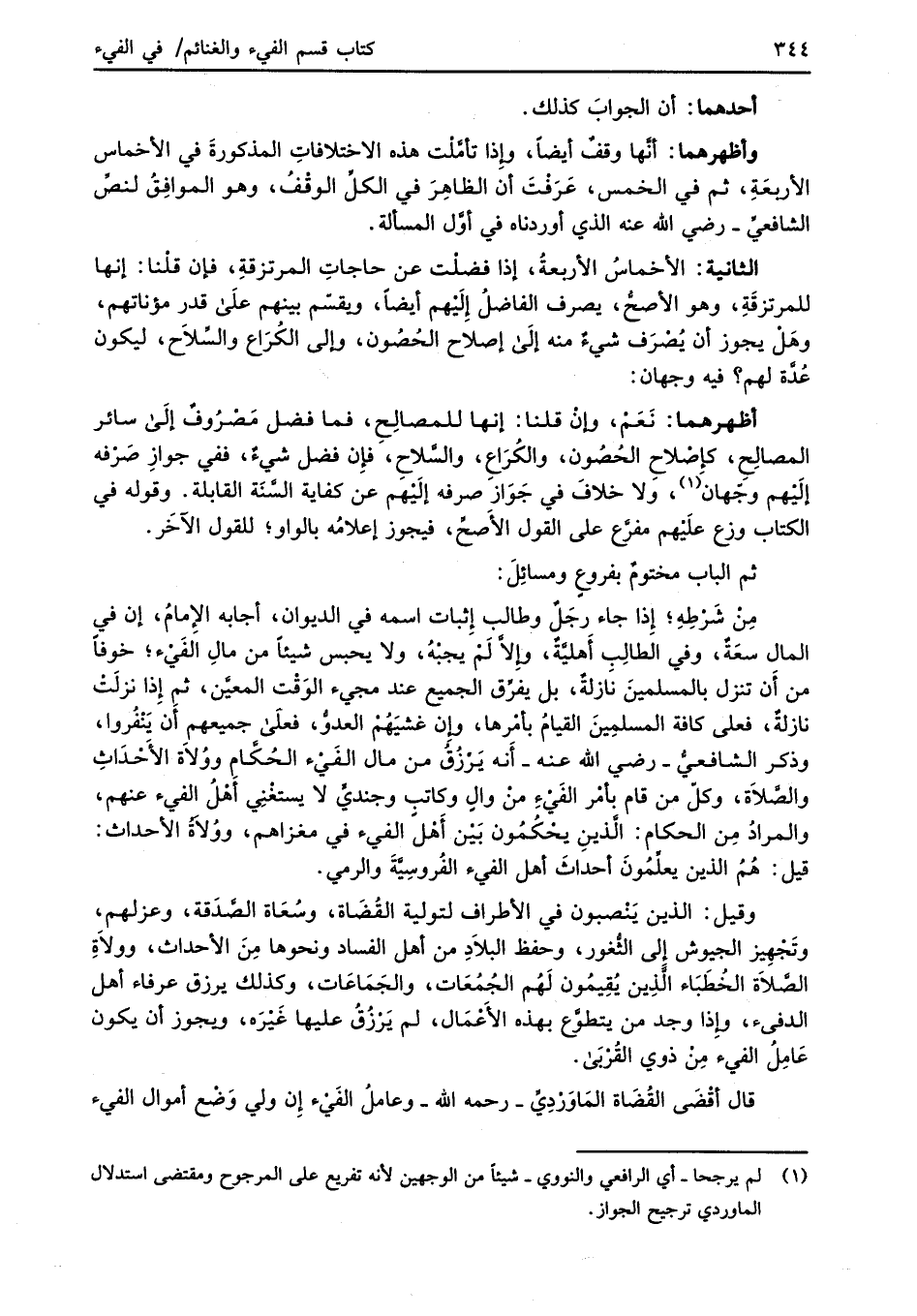 قال أقْضَى القُضَاة المَاوَرْدِيِّ -رحمه الله- وعاملُ الفَيْء إِن ولي وَضْع أموال الفيء