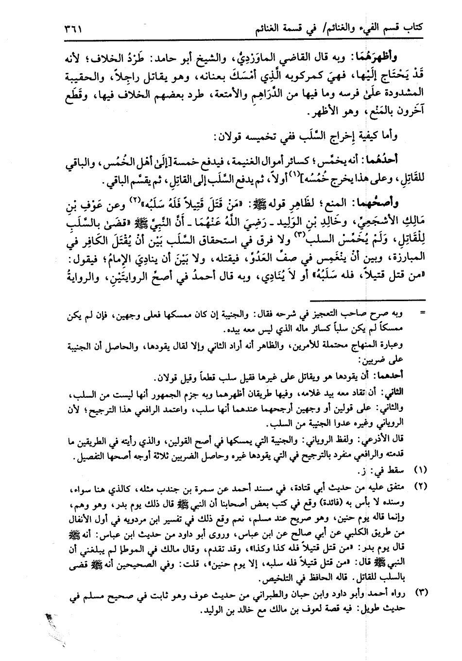 وأما كيفية إِخراج السَّلَب ففي تخميسه قولان: