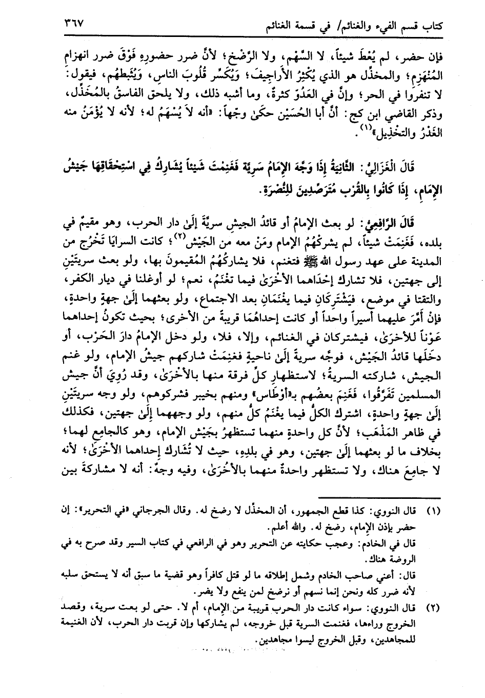 قال في الخادم: وعجب حكايته عن التحرير وهو في الرافعي في كتاب السير وقد صرح به في الروضة هناك.