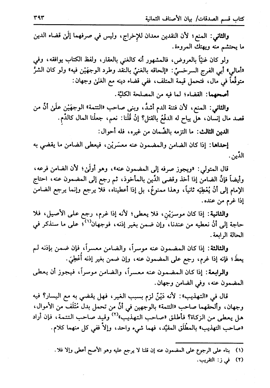 ولو كان غنيّاً بالعروض، فالمشهور أنه كالغني بالعقار، ولفظ الكتاب يوافقه، وفي "أمالي" أبي الفرج السرخسيِّ: "إلحاقه بالغنيِّ بالنقد وطرد الوجهَيْن فيه" ولو كان الشرُّ متوقَّعاً في مال، فتحمل قيمة المتلف، ففي قضاء دينه مع الغنَى وجهان: