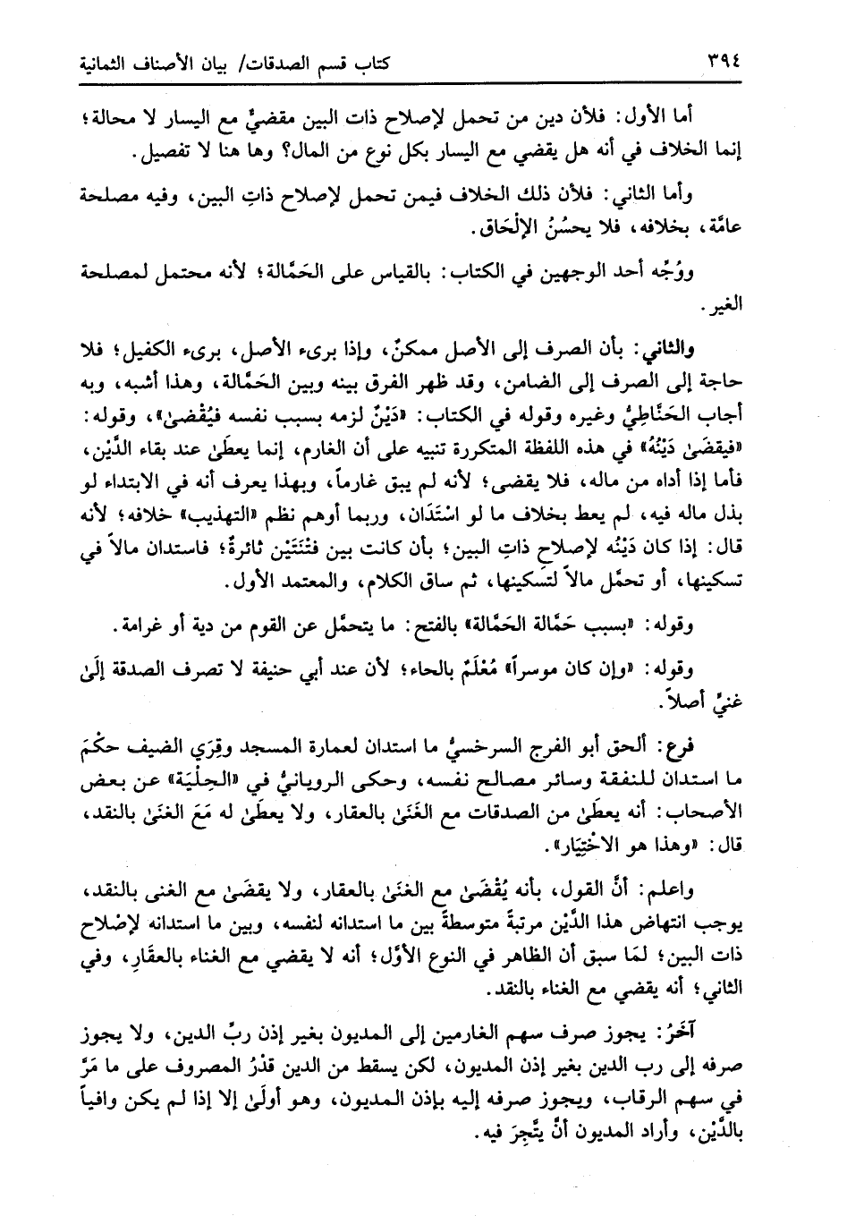 واعلم: أنَّ القول، بأنه يُقْضَى مع الغنَى بالعقار، ولا يقضَى مع الغنى بالنقد، يوجب انتهاض هذا الدَّيْن مرتبةً متوسطةً بين ما استدانه لنفسه، وبين ما استدانه لإصْلاح ذات البين؛ لمَا سبق أن الظاهر في النوع الأوَّل؛ أنه لا يقضي مع الغناء بالعقَارِ، وفي الثاني؛ أنه يقضي مع الغناء بالنقد.