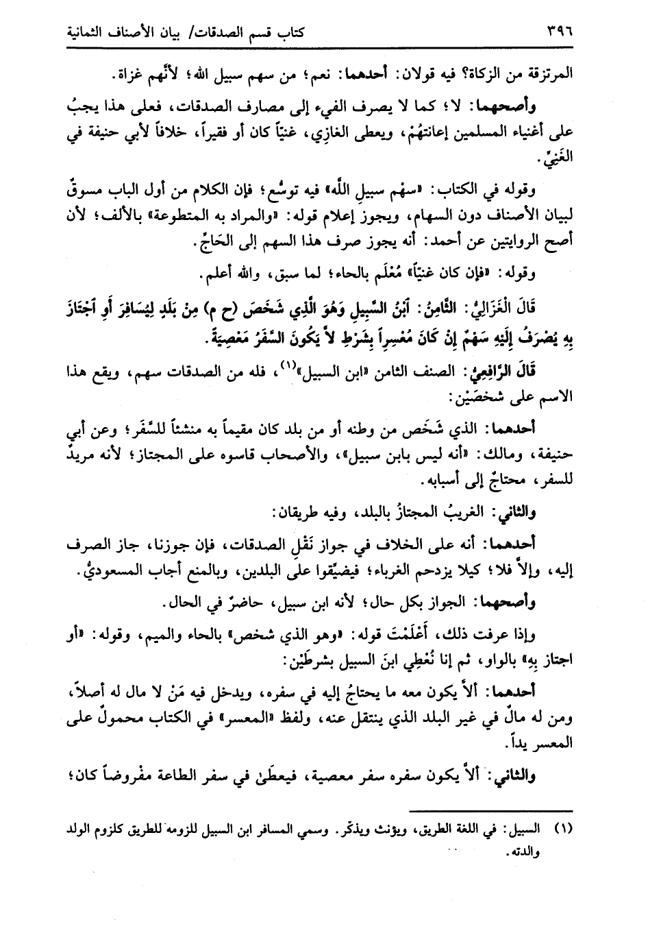 (¬1) السبيل: في اللغة الطريق، ويؤنث ويذكّر. وسمي المسافر ابن السبيل للزومه للطريق كلزوم الولد والدته.
