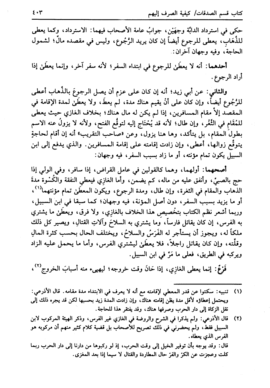 (¬2) قال الأذرعي: ولم يذكرا في الشرح والروضة في المغازي غير الفرس، وذكر الهيئة المركوب لابن السبيل فقط، ولم يحضرني في ذلك تصريح للأصحاب بل قضية كلام كثير منهم أن مركوبه هو الفرس الذي يعطاه.