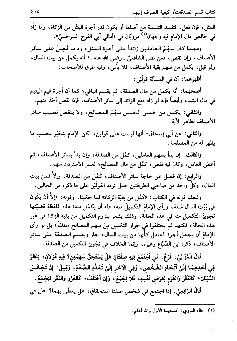 والرابع: إن فضل عن حاجة سائر الأصناف، كَمَّل من الصدقة، وإلاَّ فمن بيت المال، وكلُّ واحد من صاحبي الطريقتين حمل تردد القولَيْن على ما ذكره من الحالين.