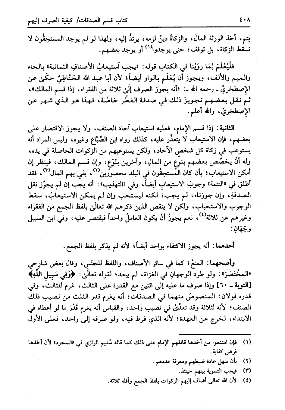(¬4) لأن الله تعالى أضاف إليهم الزكوات بلفظ الجمع وأقله ثلاثة.