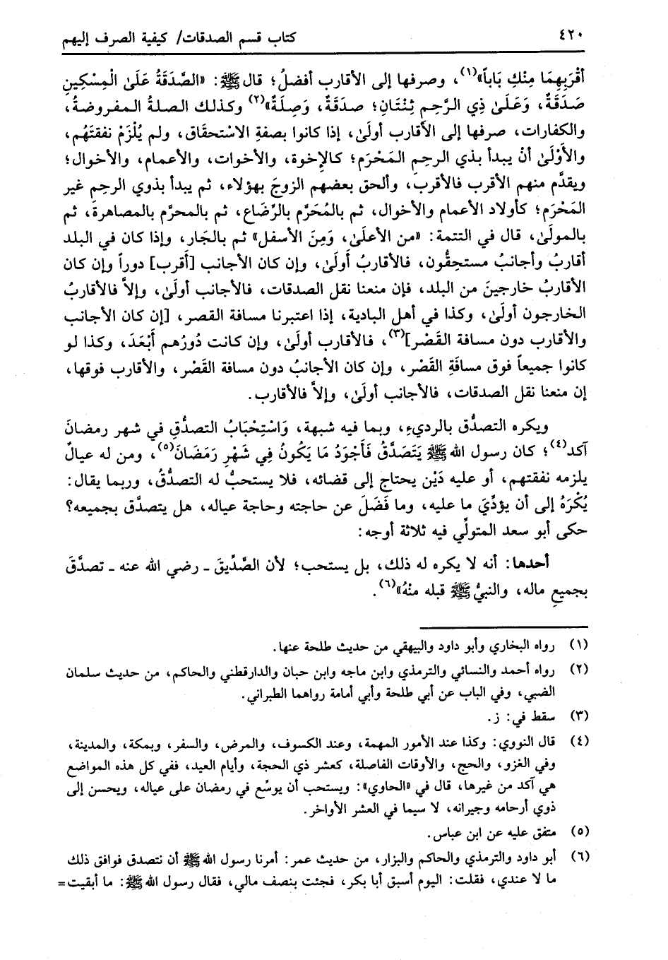 أقْرَبِهِمَا مِنْكِ بَاباً" (¬1)، وصرفها إلى الأقارب أفضلُ؛ قال -صلى الله عليه وسلم-: "الصَّدَقَةُ عَلَى المِسْكِينِ صَدَقَةٌ، وَعَلَى ذِي الرَّحِم ثِنْتَانِ؛ صدَقَةٌ، وَصِلَةٌ" (¬2) وكذلك الصلةُ المفروضةُ، والكفارات، صرفها إلى الأقارب أولَى، إذا كانوا بصفةِ الاسْتحقَاق، ولم يُلْزَمْ نفقتَهُم، والأَوْلَى أن يبدأ بذي الرحِمِ المَحْرَم؛ كالإخوة، والأخوات، والأعمام، والأخوال؛ ويقدَّم منهم الأقرب فالأقرب، وألحق بعضهم الزوجَ بهؤلاء، ثم يبدأ بذوي الرحِمِ غير المَحْرَم؛ كأولاد الأعمام والأخوال، ثم بالمُحَرَّم بالرِّضَاع، ثم بالمحرَّم بالمصاهرة، ثم بالمولَى، قال في التتمة: "من الأعلَى، وَمِنَ الأسفل" ثم بالجَار، وإذا كان في البلد أقاربُ وأجانبُ مستحِقُّون، فالأقاربُ أَولَى، وإن كان الأجانب [أَقرب] دوراً وإن كان الأقاربُ خارجينَ من البلد، فإن منعنا نقل الصدقات، فالأجانب أولَى، وإلاَّ فالأقاربُ الخارجون أولَى، وكذا في أهل البادية، إذا اعتبرنا مسافة القصر، [إن كان الأجانب والأقارب دون مسافة القَصْر] (¬3)، فالأقارب أولَى، وإن كانت دُورُهم أَبْعَدَ، وكذا لو كانوا جميعاً فوق مسافَةِ القَصْر، وإن كان الأجانبُ دون مسافة القَصْر، والأقارب فوقها، إن منعنا نقل الصدقات، فالأجانب أولَى، وإلاَّ فالأقارب.