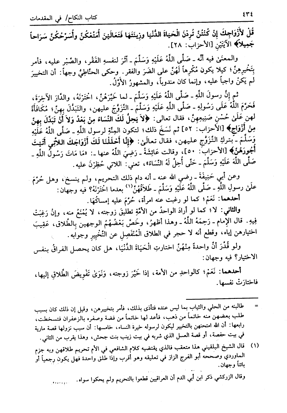قُلْ لِأَزْوَاجِكَ إِنْ كُنْتُنَّ تُرِدْنَ الْحَيَاةَ الدُّنْيَا وَزِينَتَهَا فَتَعَالَيْنَ أُمَتِّعْكُنَّ وَأُسَرِّحْكُنَّ سَرَاحًا جَمِيلًا} الآيَتَيْنِ [الأحزاب: 28].