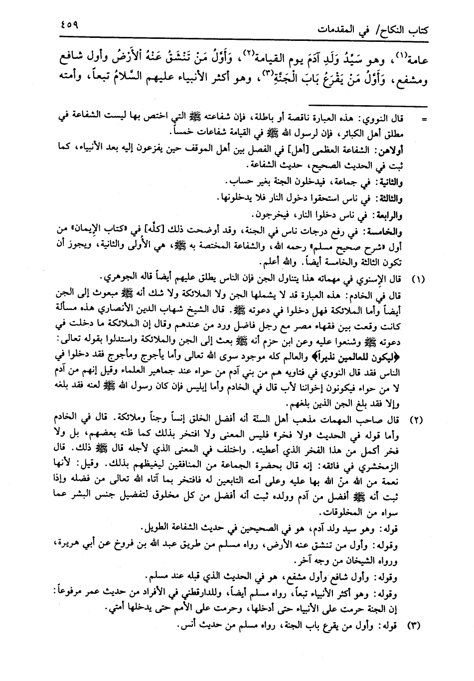 (¬2) قال صاحب المهمات مذهب أهل الستة أنه أفضل الخلق إنساً وجناً وملائكة. قال في الخادم وأما قوله في الحديث "ولا فخر" فليس المعنى ولا افتخر بذلك كما ظنه بعضهم، بل ولا فخر أكمل من هذا الفخر الذي أعطيته. واختلف في المعنى الذي لأجله قال -صلى الله عليه وسلم- ذلك. قال الزمخشري في فائقه: إنه قال بحضرة الجماعة من المنافقين ليغيظهم بذلك. وقيل: لأنها نعمة من الله منّ الله بها عليه وعلى أمته التابعين له فافتخر بما آتاه الله تعالى من فضله وإذا ثبت أنه -صلى الله عليه وسلم- أفضل من آدم وولده ثبت أنه أفضل من كل مخلوق لتفضيل جنس البشر عما سواه من المخلوقات.