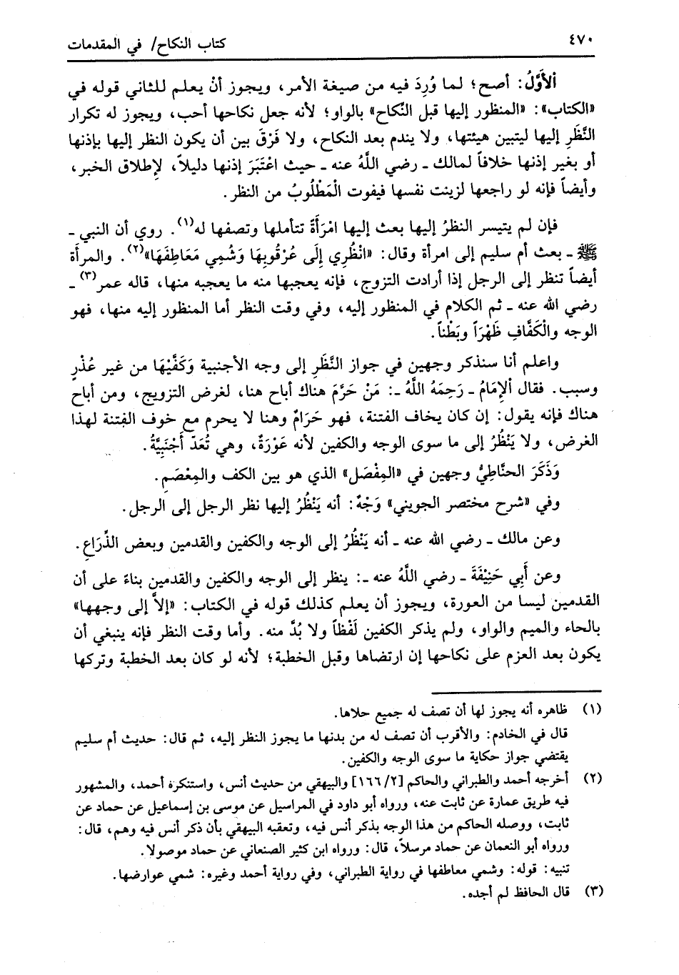 الأَوَّلُ: أصح؛ لما وُرِدَ فيه من صيغة الأمر، ويجوز أنْ يعلم للثاني قوله في "الكتاب": "المنظور إليها قبل النِّكاح" بالواو؛ لأنه جعل نكاحها أحب، ويجوز له تكرار النَّظَرِ إليها ليتبين هيئتها، ولا يندم بعد النكاح، ولا فَرْقَ بين أن يكون النظر إليها بإذنها أو بغير إذنها خلافاً لمالك -رضي اللهُ عنه- حيث اعْتَبَرَ إذنها دليلاً، لإطلاق الخبر، وأيضاً فإنه لو راجعها لزينت نفسها فيفوت الْمَطْلُوبُ من النظر.
