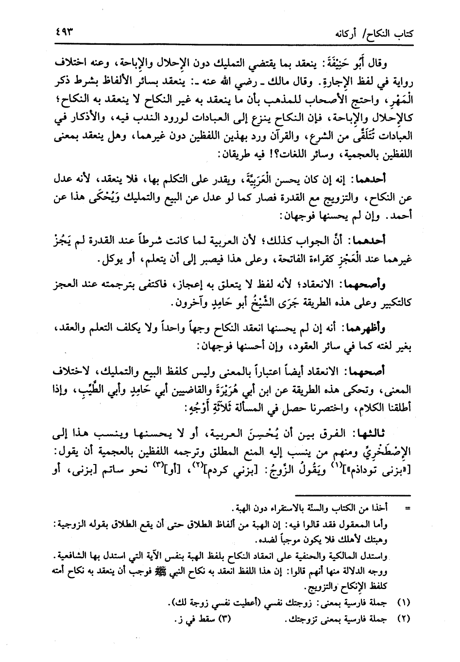 ثالثها: الفرق بين أن يُحْسِنَ العربية، أو لا يحسنها وينسب هذا إلى الإصْطَخْرِيِّ ومنهم من ينسب إليه المنع المطلق وترجمه اللفظين بالعجمية أن يقول: ["بزنى توداذم"] (¬1) ويَقُولُ الزَّوجُ: [بزني كردم] (¬2)، [أو] (¬3) نحو ساتم [بزنى، أو