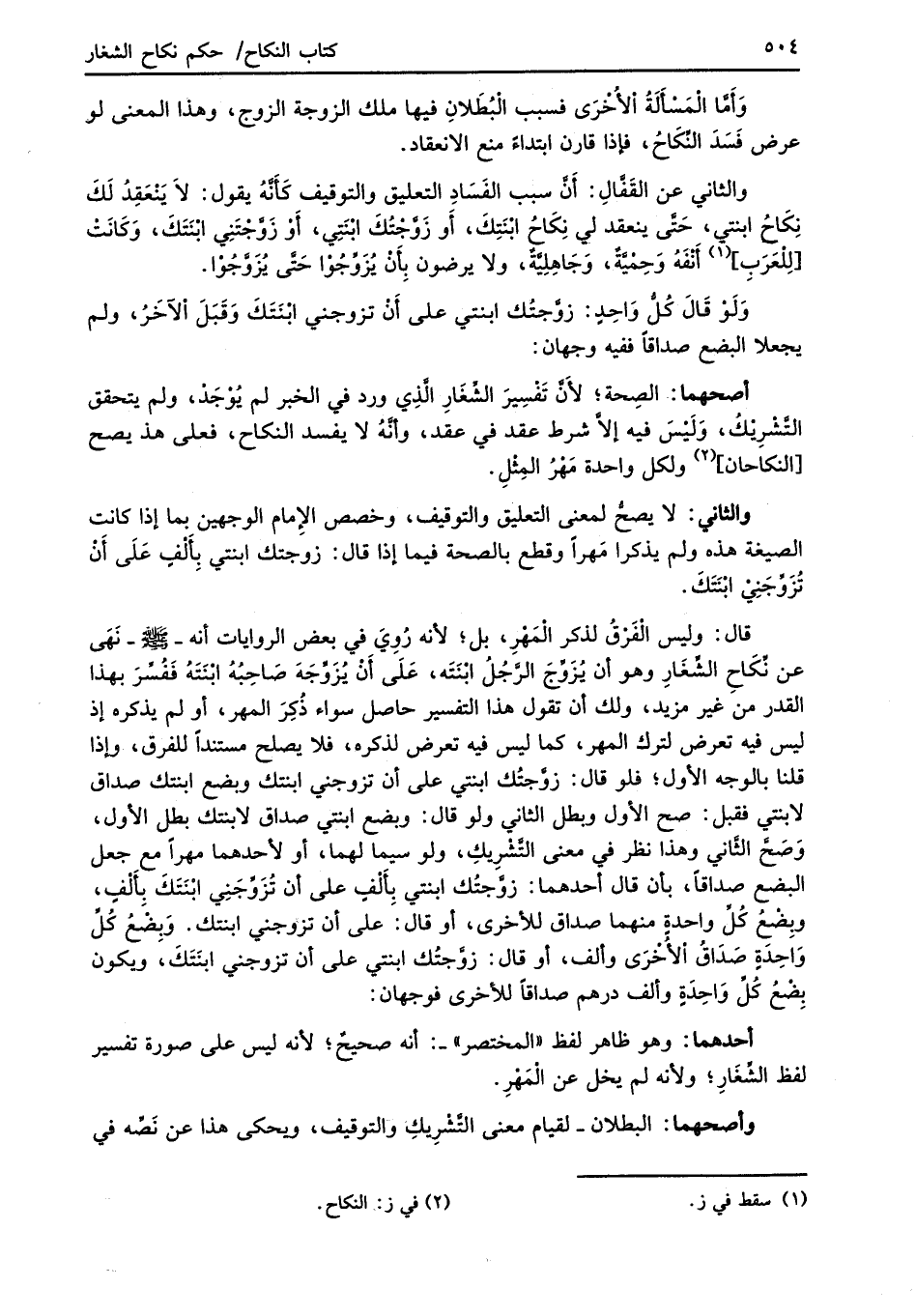 والثاني: لا يصحُّ لمعنى التعليق والتوقيف، وخصص الإِمام الوجهين بما إذا كانت الصيغة هذه ولم يذكرا مَهراً وقطع بالصحة فيما إذا قال: زوجتك ابنتي بِأَلْفٍ عَلَى أَنْ تُزَوِّجَنِيْ ابْنَتَكَ.