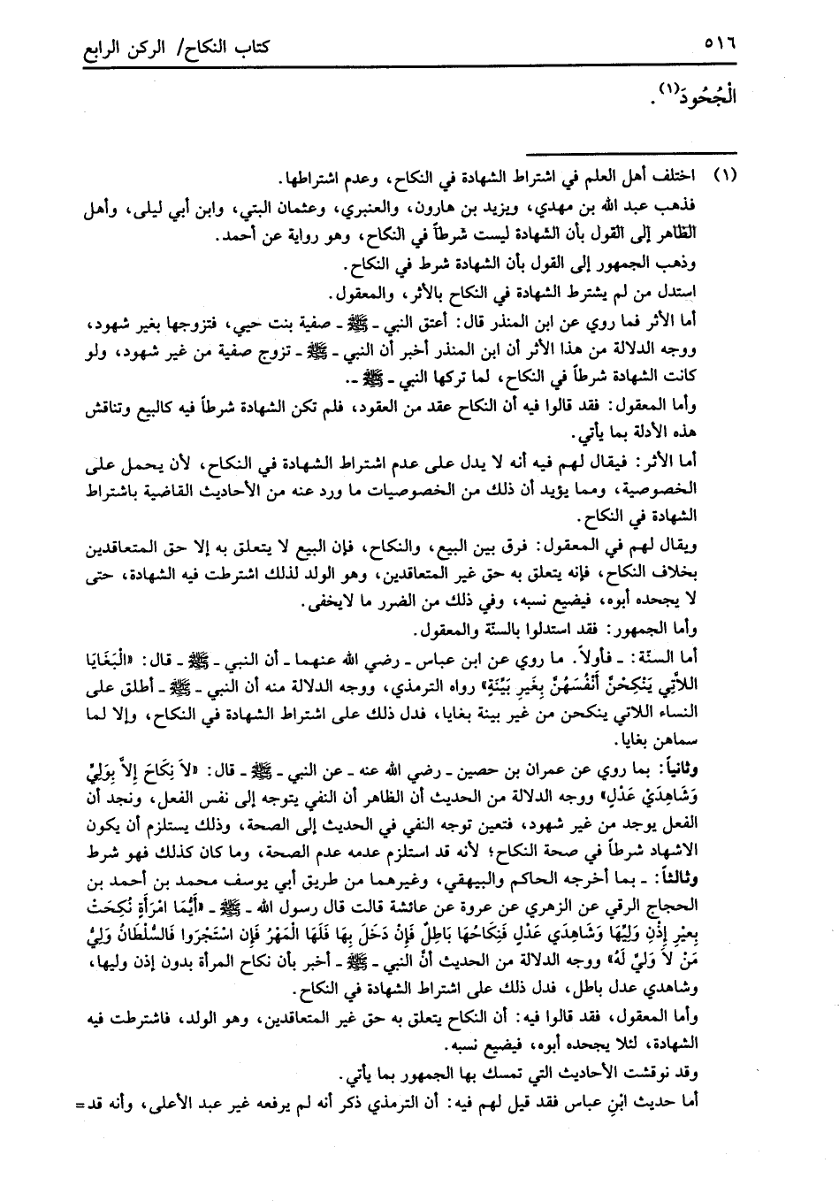 (¬1) اختلف أهل العلم في اشتراط الشهادة في النكاح، وعدم اشراطها.