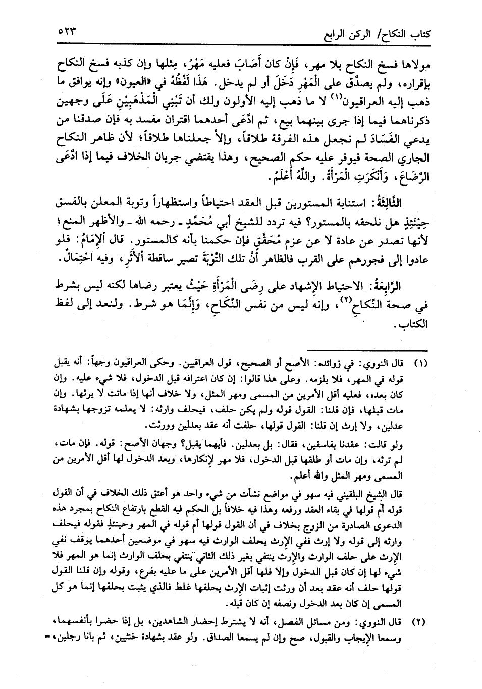 (¬2) قال النووي: ومن مسائل الفصل، أنه لا يشترط إحضار الشاهدين، بل إذا حضرا بأنفسهما، وسمعا الإِيجاب والقبول، صح وإن لم يسمعا الصداق. ولو عقد بشهادة خنثيين، ثم بانا رجلين، =