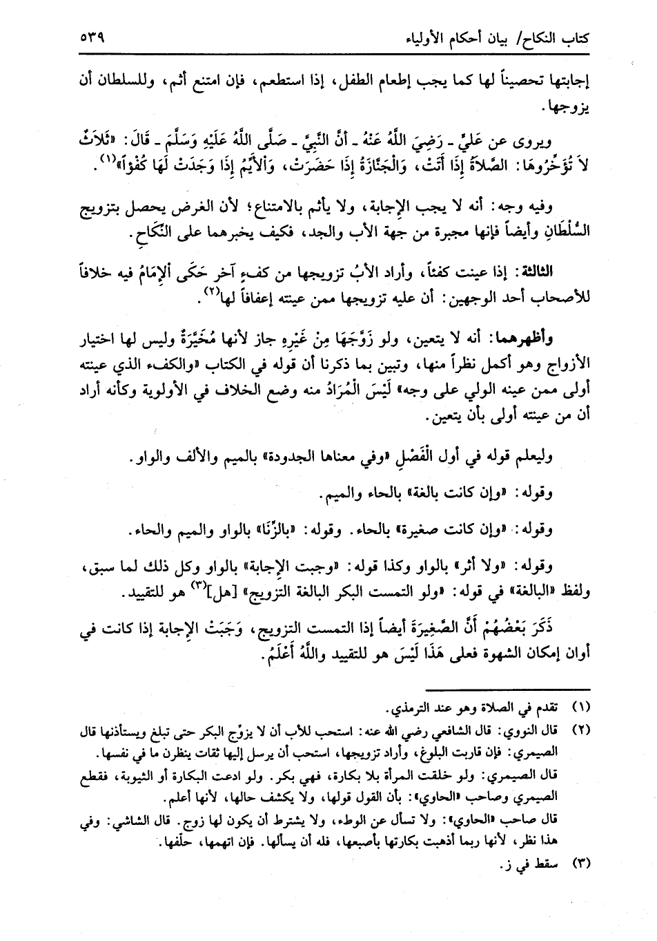 ويروى عن عَليٍّ -رَضِيَ اللهُ عَنْهُ- أنَّ النَّبِيَّ- صَلَّى اللهُ عَلَيْهِ وَسَلَّمَ- قَالَ: "ثَلاَثٌ لاَ تُؤَخِّرُوهَا: الصَّلاةُ إِذَا أَتَتْ، وَالْجَنَّازَةُ إِذَا حَضَرَتْ، وَالأَيِّمُ إِذَا وَجَدَتْ لَهَا كُفْؤاً" (¬1).