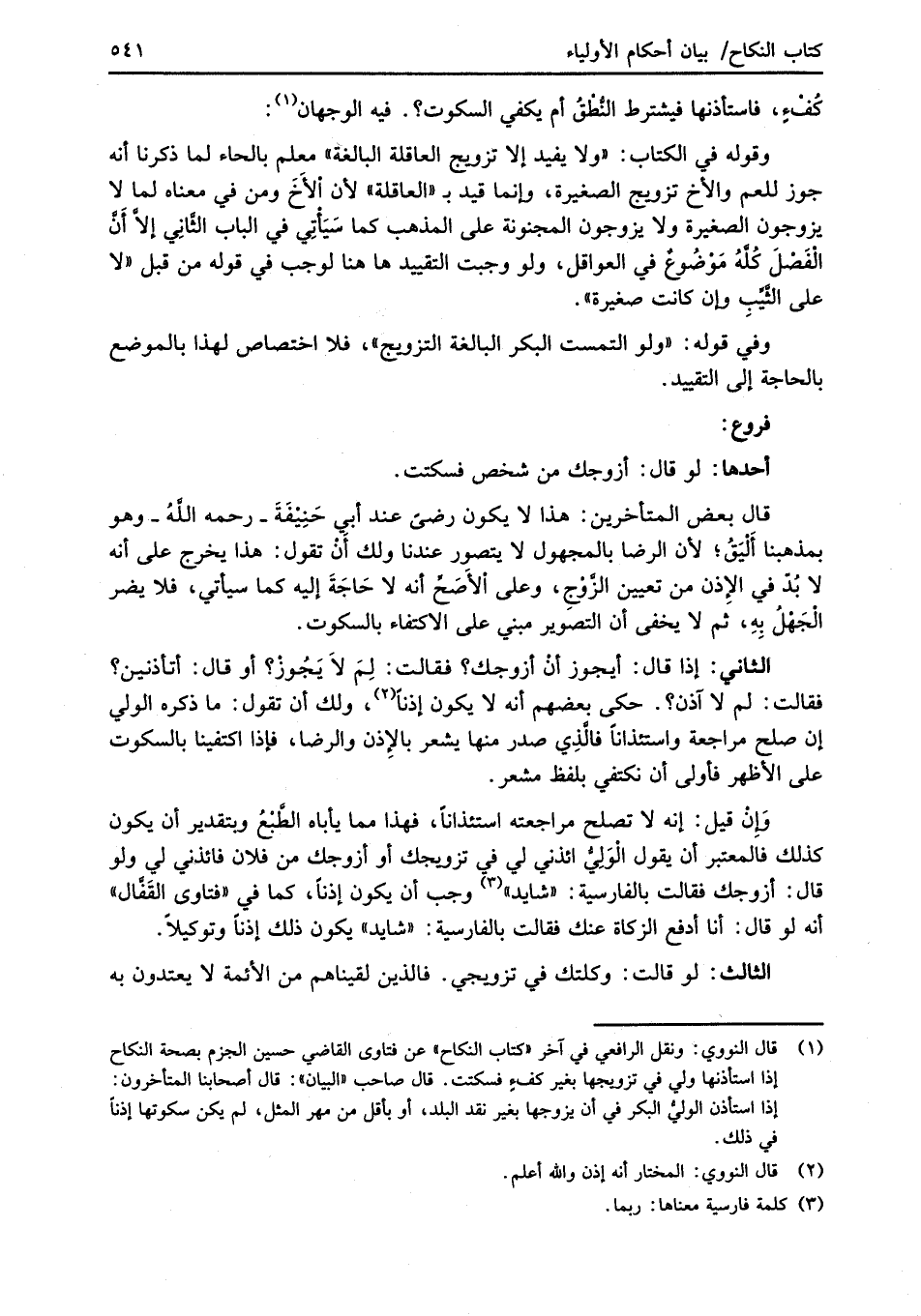 (¬1) قال النووي: ونقل الرافعي في آخر "كتاب النكاح" عن فتاوى القاضي حسين الجزم بصحة النكاح إذا استأذنها ولي في تزويجها بغير كفءٍ فسكتت. قال صاحب "البيان": قال أصحابنا المتأخرون: إذا استأذن الوليُّ البكر في أن يزوجها بغير نقد البلد، أو بأقل من مهر المثل، لم يكن سكوتها إذناً في ذلك.