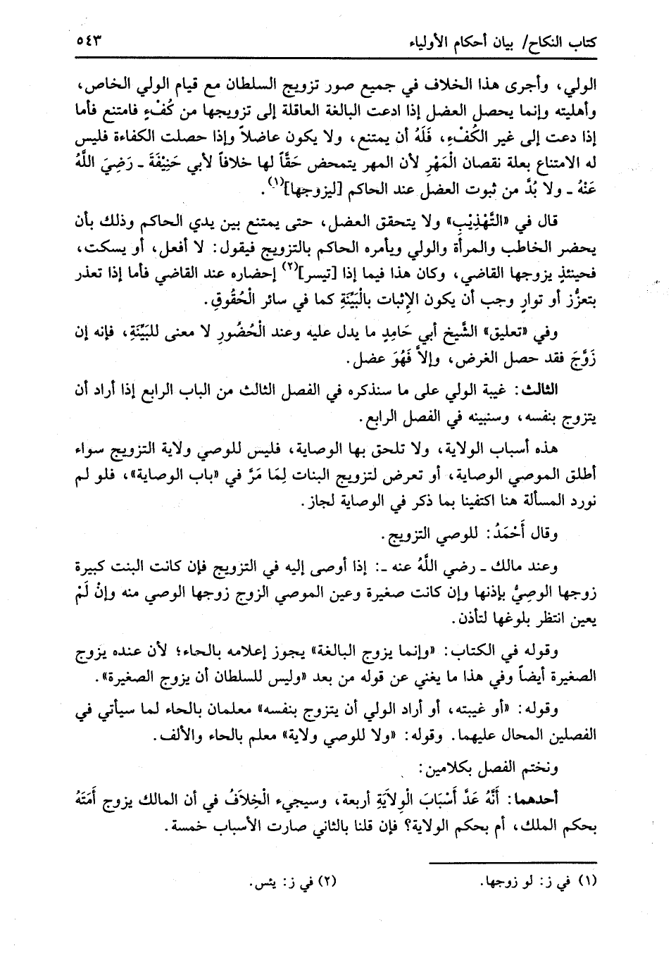 الولي، وأجرى هذا الخلاف في جميع صور تزويج السلطان مع قيام الولي الخاص، وأهليته وإنما يحصل العضل إذا ادعت البالغة العاقلة إلى تزويجها من كُفْءٍ فامتنع فأما إذا دعت إلى غير الكُفْءِ، فَلَهُ أن يمتنع، ولا يكون عاضلاً وإذا حصلت الكفاءة فليس له الامتناع بعلة نقصان الْمَهْرِ لأن المهر يتمحض حَقَّاً لها خلافاً لأبي حَنِيْفَةَ -رَضِيَ اللهُ عَنْهُ- ولا بُدَّ من ثبوت العضل عند الحاكم [ليزوجها] (¬1).