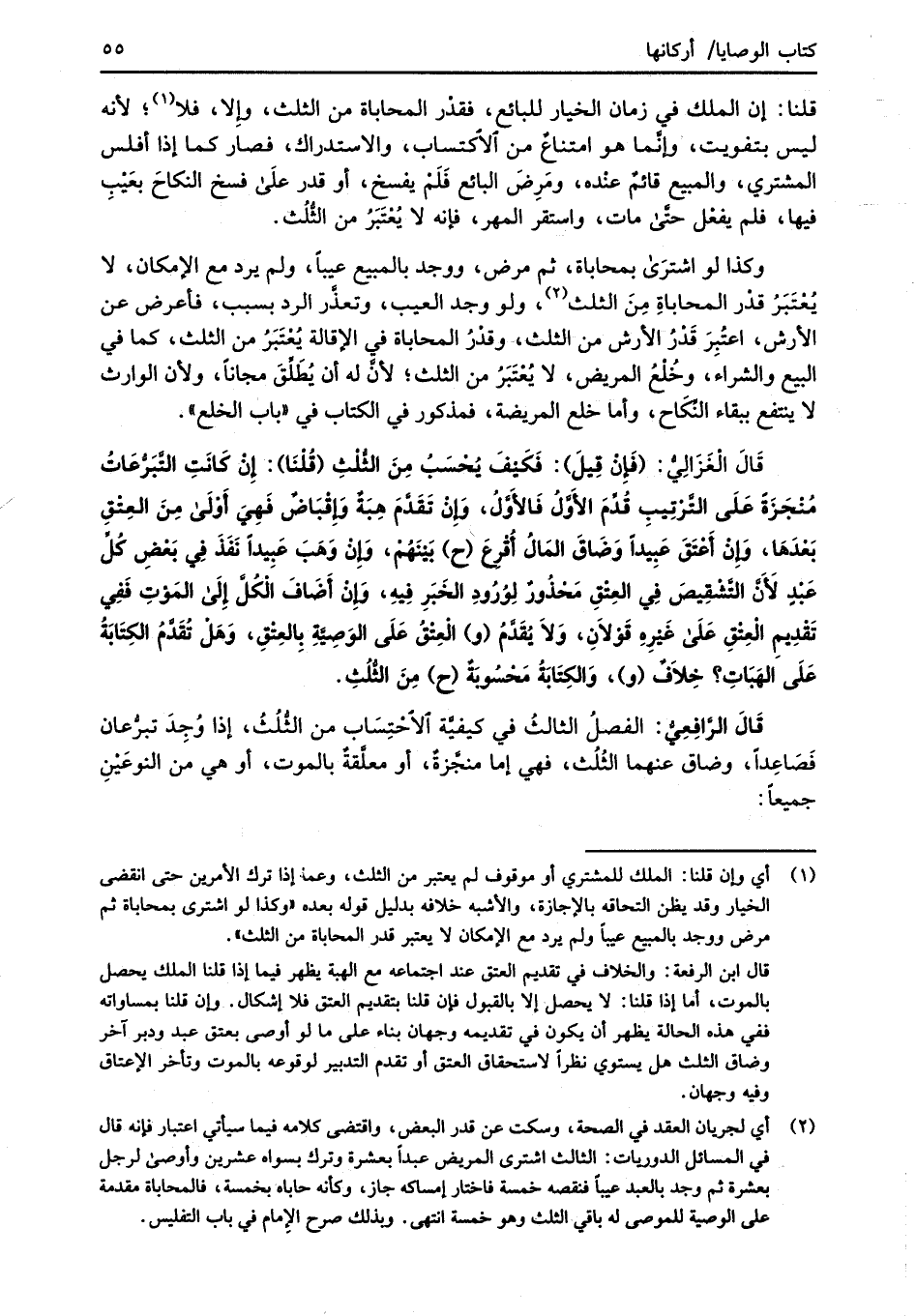 قَالَ الرَّافِعِيُّ: الفصلُ الثالثُ في كيفيَّة الاحْتِسَاب من الثُّلُثُ، إذا وُجِدَ تبرُّعان فَصَاعِدًا، وضاق عنهما الثُلُث، فهي إما منجَّزةٌ، أو معلَّقة بالموت، أو هي من النوعَيْنِ جميعاً: