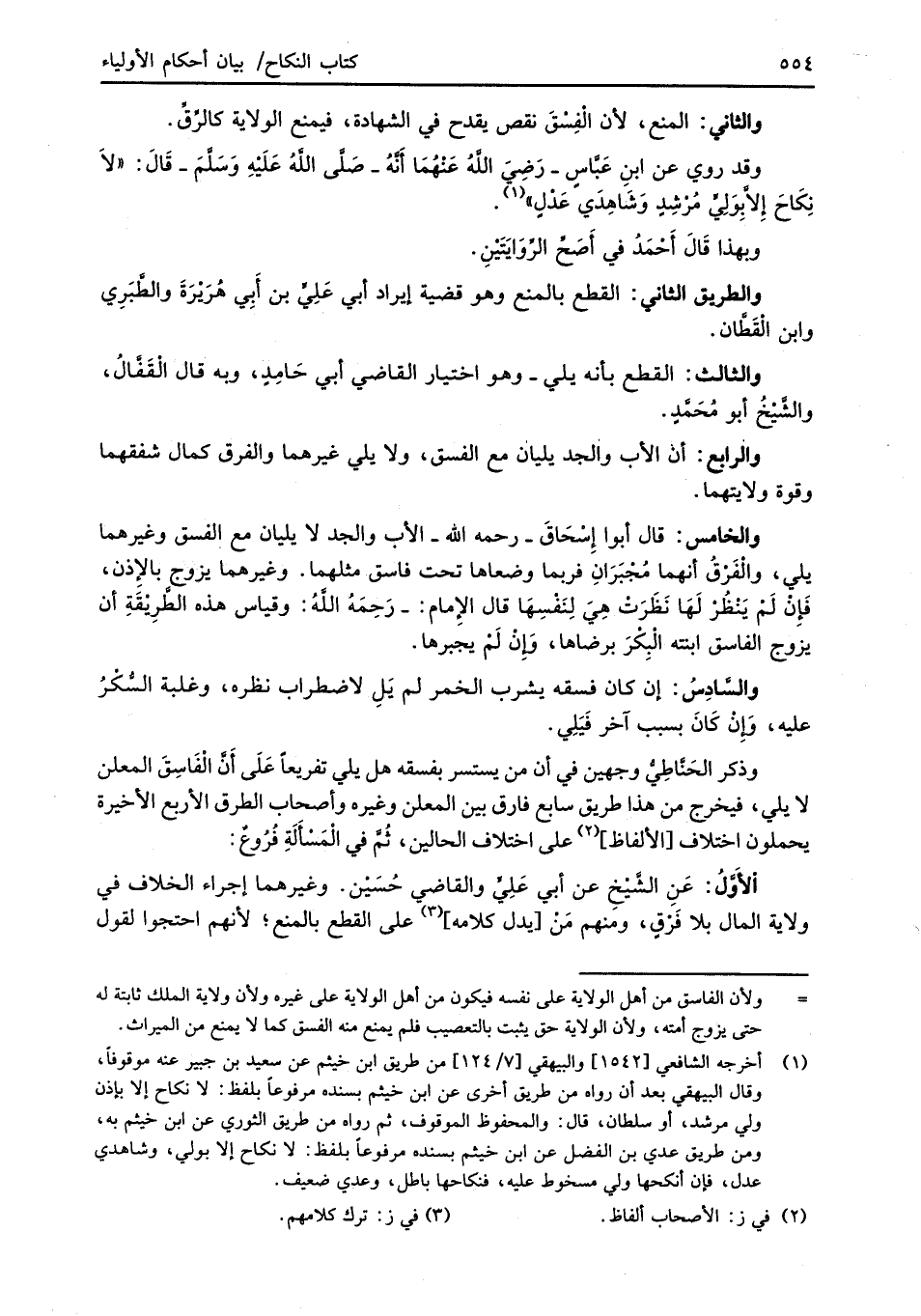 الأَوَّلُ: عَنِ الشَّيْخِ عن أبي عَلِيٍّ والقاضي حُسَيْن. وغيرهما إجراء الخلاف في ولاية المال بلا فَرْقٍ، ومنهم مَنْ [يدل كلامه] (¬3) على القطع بالمنع؛ لأنهم احتجوا لقول