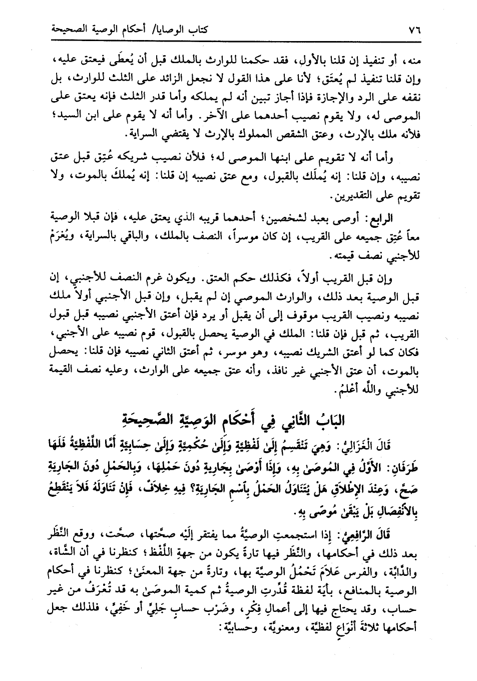 البَابُ الثَّانِي في أَحْكَامِ الوَصِيَّةِ الصَّحِيحَةِ