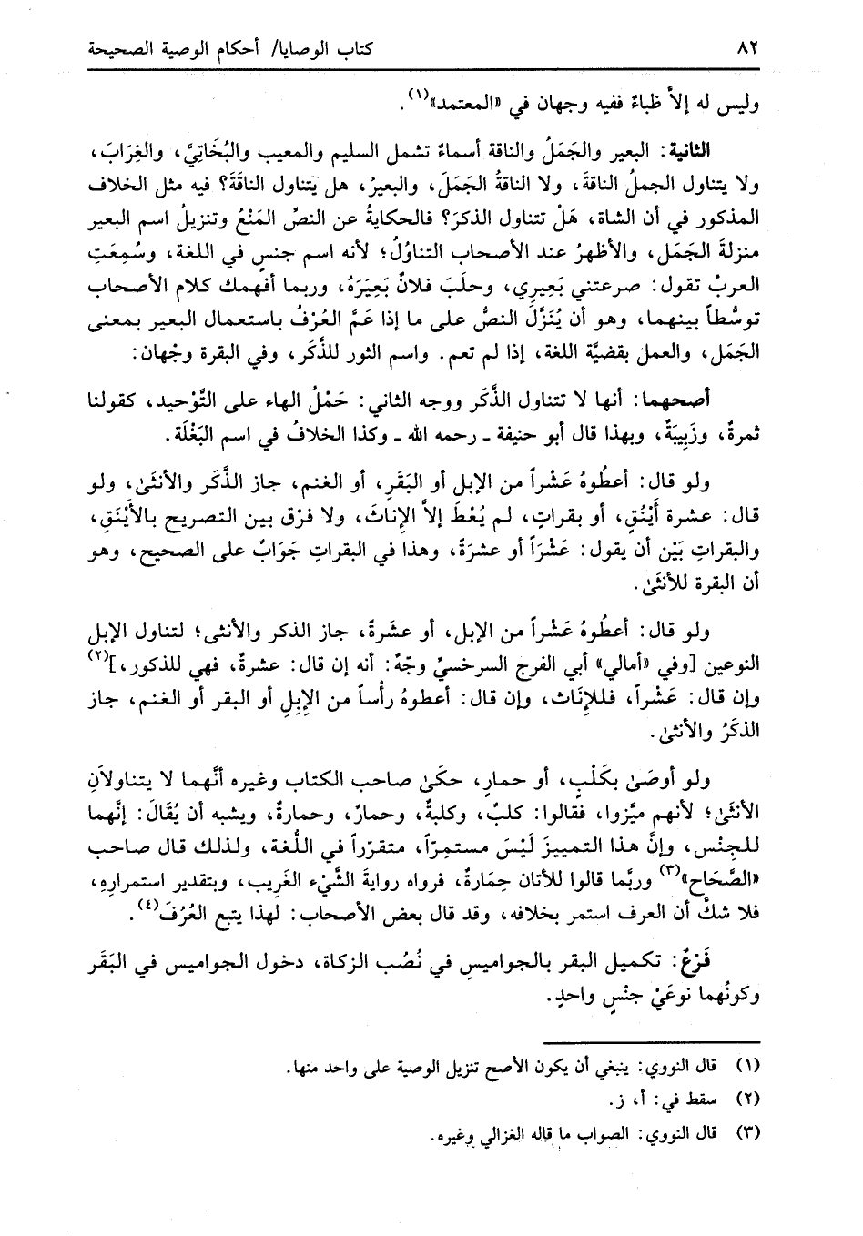 (¬1) قال النووي: ينبغي أن يكون الأصح تنزيل الوصية على واحد منها.