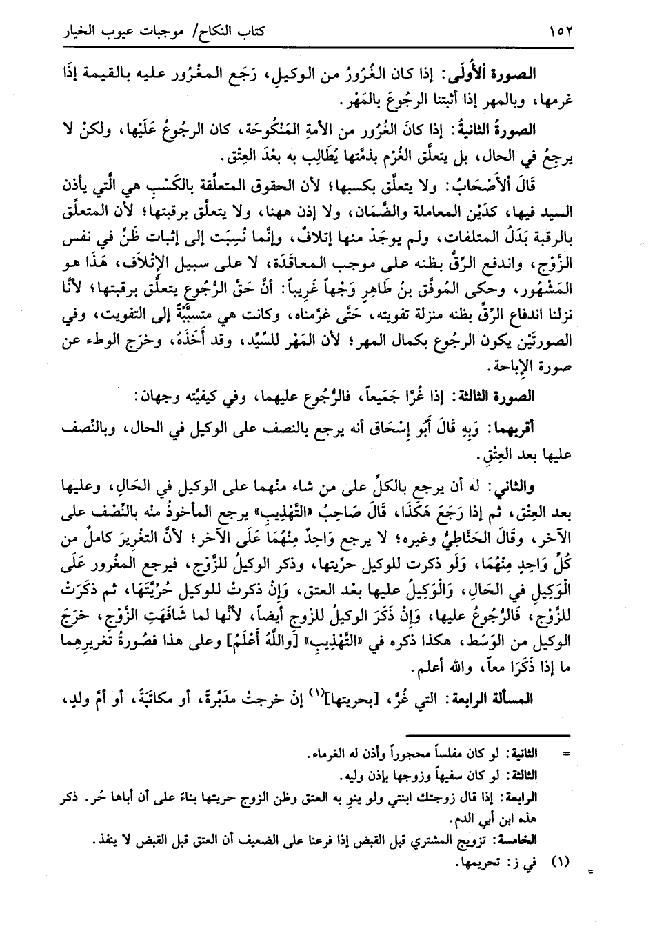 والثاني: له أن يرجع بالكلِّ على من شاء منْهما على الوكيل في الحَالِ، وعليها بعد العِتْق، ثم إذا رَجَعَ هَكَذَا، قَالَ صَاحِبُ "التَّهْذِيبِ" يرجع المأخوذُ منْه بالنِّصْف على الآخر، وقَالَ الحَنَّاطِيُّ وغيره؛ لا يرجع وَاحِدٌ مِنْهُمَا عَلَى الآخر؛ لأنَّ التغْرِيرَ كاملٌ من كُلِّ واحدٍ مِنْهُمَا، وَلَو ذكرت للوكيل حرِّيتها، وذكر الوكيلُ للزَّوْج، فيرجع المغُرور عَلَى الْوَكِيلِ في الحَالِ، وَالْوَكِيلُ عليها بعْد العتق، وَإنْ ذكرتْ للوكيل حُرِّيَّتَهَا، ثم ذكَرَتْ للزَّوْج، فَالرُّجُوعُ عليها، وَإِنْ ذَكَرَ الوكيلُ للزْوجِ أيضاً؛ لأنَّها لما شَافَهَتِ الزَّوْجِ، خرَجَ الوكيل من الوَسَط، هكذا ذكره في "التَّهْذِيبِ" [واللهُ أَعْلَمُ] وعلى هذا فصُورةُ تغريرِهِما ما إذا ذَكَرَا معاً، والله أعلم.