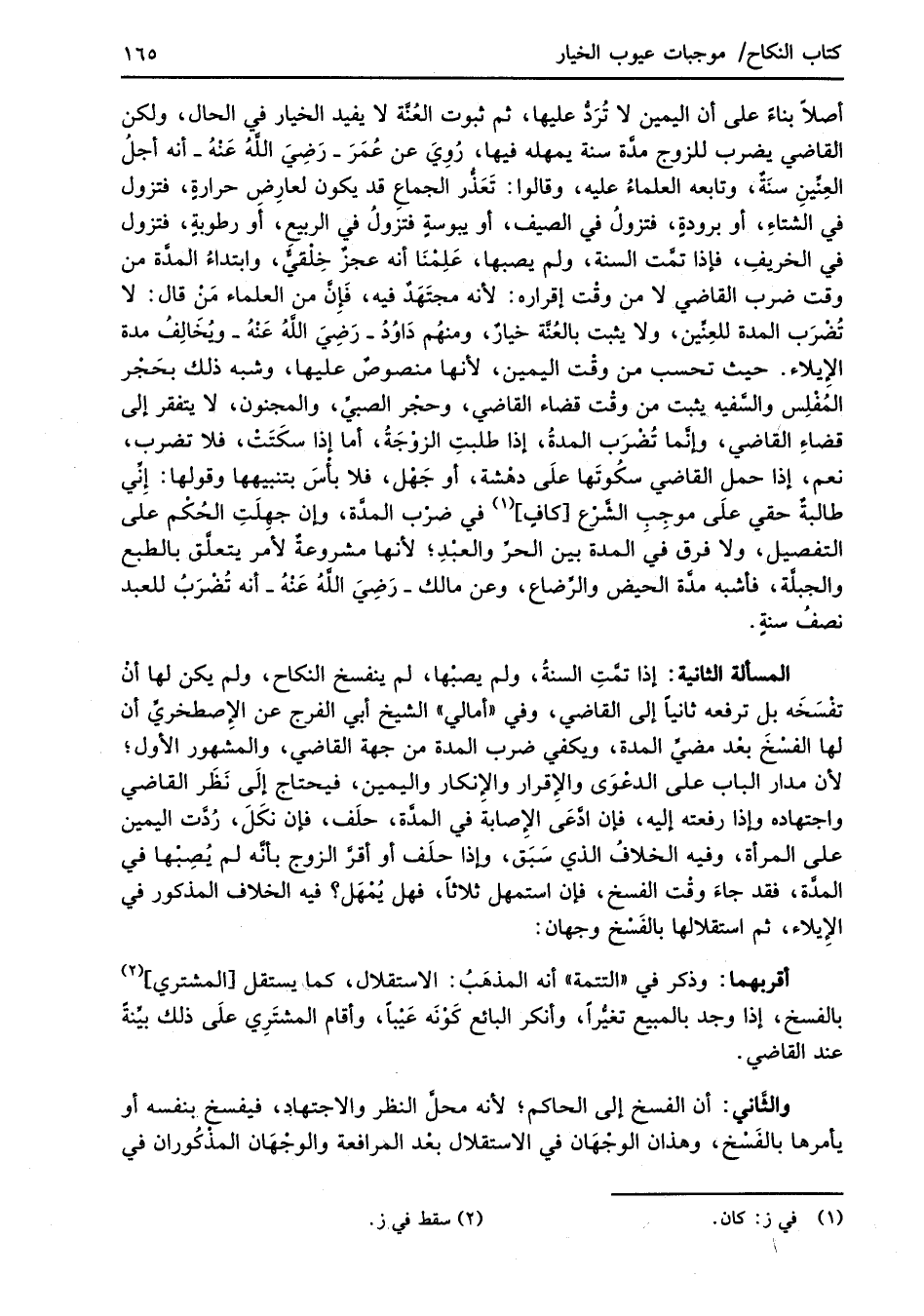 والثَّاني: أن الفسخ إلى الحاكم؛ لأنه محلَّ النظر والاجتهاد، فيفسني بنفسه أو يأمرها بالفَسْخ، وهذان الوجْهَان في الاستقلال بعْد المرافعة والوجْهَان المذْكُوران في