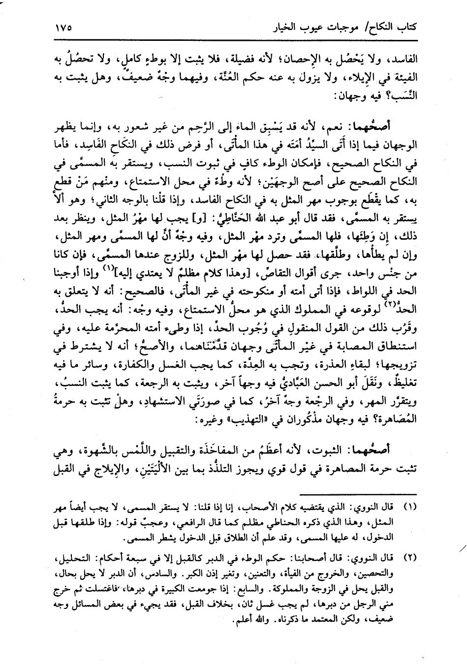(¬2) قال النووي: قال أصحابنا: حكم الوطء في الدبر كالقبل إلا في سبعة أحكام: التحليل، والتحصين، والخروج من الفيأة، والتعنين، وتغير إذن الكبر. والسادس، أن الدبر لا يحل بحال، والقبل يحل في الزوجة والمملوكة. والسابع: إذا جومعت الكبيرة في دبرها، "فاغتسلت ثم خرج منى الرجل من دبرها، لم يجب غسل ثان، بخلاف القبل، فقد يجيء في بعض المسائل وجه ضعيف، ولكن المعتمد ما ذكرناه. والله أعلم.