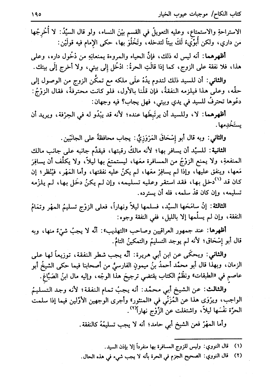 (¬2) قال النووي: الصحيح الجزم في الحرة بأنه لا يجب شيء في هذه الحال.