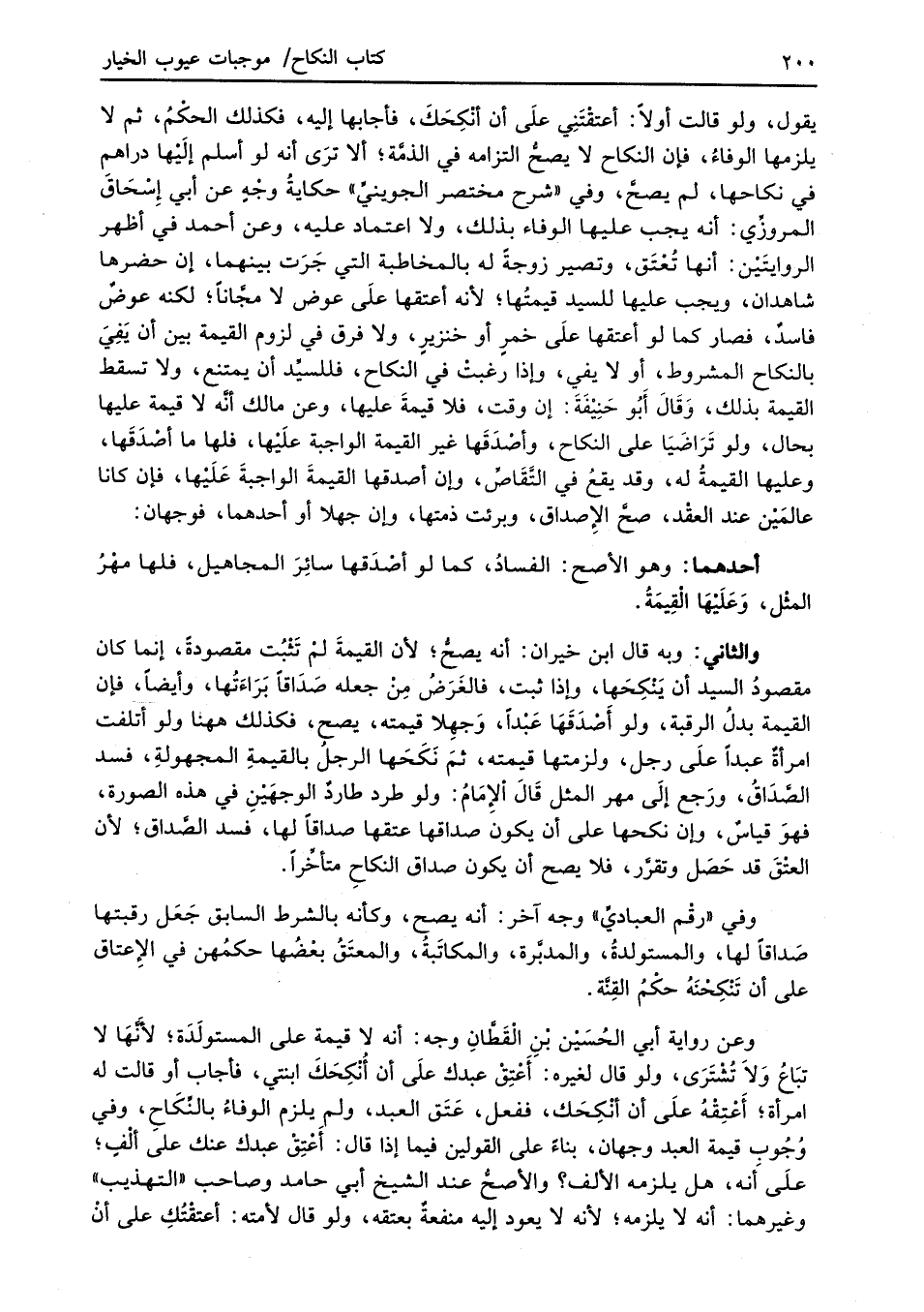 وفي "رقْم العباديِّ" وجه آخر: أنه يصح، وكأنه بالشرط السابق جَعَل رقبتها صَداقاً لها، والمستولدةُ، والمدبَّرة، والمكاتَبةُ، والمعتَقُ بعْضُها حكمُهن في الإِعتاق على أن تَنْكِحْنَهُ حكْمُ القِنَّة.