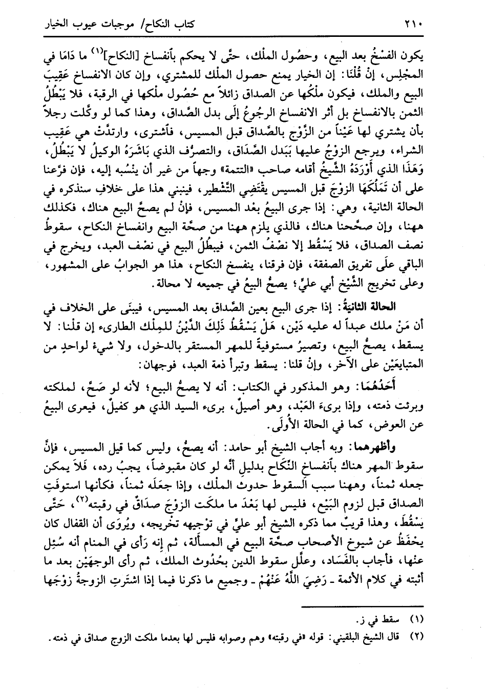 (¬2) قال الشيخ البلقيني: قوله "في رقبته" وهم وصوابه فليس لها بعدما ملكت الزوج صداق في ذمته.