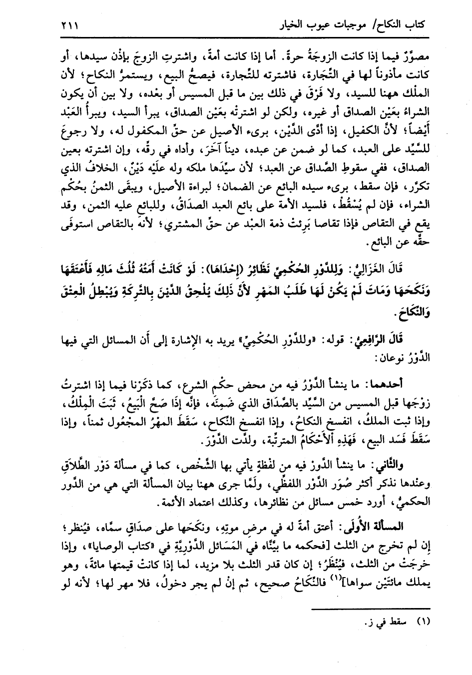 قَالَ الرَّافِعِيُّ: قوله: "وللدَّوْرِ الحُكْمِيِّ" يريد به الإِشارة إلى أَن المسائل التي فيها الدَّوْرُ نوعان: