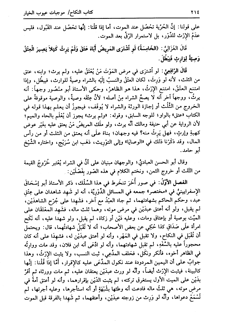 الفصل الأوَّل: في صور أُخَرَ تنخَرط في هذا السِّلْك، ذكر الأستاذ أبو إسْحَاقَ الإِسفرايينيُّ في "مختصر" جمعه في المسائل الدَّوْريَّة، أنه لو شَهِد شاهدان على عِتْقِ عبد، وحكم الحاكم بشهادتهما، ثم جاءَ العبْدُ مع آخر، فشَهِدا على جُرْح الشاهدَيْن، لم يقبل، ولو أنه أعتق عبدَيْن في مرض موته، وهما ثلث ماله، فشَهِد المعْتَقَان على الميِّت بوصية أو بإعتاق ومات، وعليه دَيْن أو زكاة، لم يقبل، ولو شهدا عليه، أنه نَكَح امرأة علَى صَدَاقِ كذا حُكِي عن بعض الأصحاب؛ أنه لا تُقْبَلُ شهادتُهما، قال: ويحتمل أن تُقْبَل في النكاح، ولا تقبل في المَهْر، وأنه لو أعتق عبدَيْن له، فشهِدَا على أنه كان محجوراً عليه بالسَّفَهِ، لم تقبل شهادتهما، وأنه لو ادَّعَى أنه ابن فلان، وقد مات ووارِثُه في الظاهر أخوه، فأنكر ونكَل، فحَلف المدَّعِي، ثبت النسب، ولا يثبت الإرْثُ، وهذا جوابٌ على أن اليمين المردودة عند نكول المدَّعَى عليه كالإقرار، أَمَّا إذا قُلْنا: إنَّها كالبينة، فيثبت الإرْث أيضاً، وأنَّه لو ورث عبدَيْن يعتقان عليهَ، ثم مات وورثاه ثم أقرَّ بدَيْن على الميت الأول يستغرق تركته، لم يثبت الدّيْن بإقرارهما، وأنه لو أعتق أمةً في مرضِ موته، هي ثلثُ ماله فادعت أنه وطئها بشُبْهَةٍ أو أنه استأجرها، وعليه أجرتها، لم تُسْمَعْ دعواها، وأنَّه لو وَرِث من زوجته عبدَيْن، وأعتقهما، ثم شَهِدا بالفرقة قبل الموت