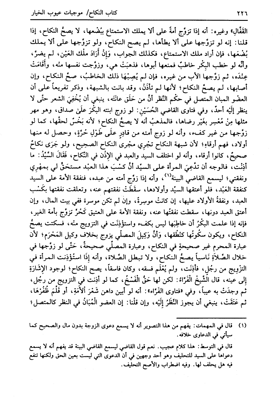 القَفَّالِ" وغيره: أنه إذا تزوَّج أمةً على ألا يملك الاستمتاع ببُضْعها، لا يصحُّ النكاح، إذا قلنا: إنه لو تزوَّجها على ألا يطأها، لم يصح النكاح، ولو تزوَّجها على ألا يملك بُضْعَها، فإن أراد ملك الاستمتاع، فكذلك الجواب، وإنْ أَرَادَ ملْك العَيْن، لم يِضرَّ، وأنَّه لو خطب البِكْر خاطبٌ فمنعها أبوها، فذهبَتْ هي، وزوَّجت نفسها منْه، وأقَامَتْ عِنْدَه، ثم زوَّجها الأب من غيره، فإن لم يُصِبْهَا ذلك الخاطبُ، صحَّ النكاح، وإن أصابها، لم يصحَّ النكاح؛ لأنها لم تأذَنْ، وقد بانت بالشبهة، وذكر تفريعاً على أن العضْو المبان المتصل في حكْم النَّظر أن من حَلَق عانَتَه، ينبغي أن يُخْفِيَ الشعر حتَّى لا ينظر إلَيْه أحدٌ، وفي فتاوى القاضي الحُسَيْنِ: لو زوج ابنته البكْرَ عَلَى صداق، وهو مهر مثلها مِنْ مُعْسِر بغَيْر رضاها، فالمذهبُ أنه لا يصحُّ النكاح؛ لأنه بَخْسٌ لحقِّها، كما لو زوَّجها من غير كفء، وأنه لو زوج أمته من قادِرٍ علَى طَوْلِ حُرَّةٍ، وحصل له منها أولاد، فهم أرقاءِ؛ لأن شبهة النكاح تجْرِي مجْرى النكاح الصحِيح، ولو جَرَى نكاحٌ صحيحٌ، كانوا أرقاء، وأنه لو اختلف السيد والعبد في الإِذْن في النِّكاح، فَقَالَ السَّيِّدُ: ما أذِنْت، فالوجه أن تدَّعِيَ المرأة على السيِّد أنَّ كسْبَ هذا العبْد مستحَقٌّ لي بمهْرِي ونفقتي؛ ليسمع القاضي البينة (¬1)، وأنه إذا زوَّج أمته من عبده، فنفقة الأمة على السيد كنفقة العَبْد، فلو أعتقها السيِّد وأولادها، سقَطَتْ نفقتهم عنه، وتعلقت نفقتها بكَسْب العبد، ونفقةُ الأولاد عليها، إن كانتْ موسِرةً، وإن لم تكن موسرة ففي بيت المال، وإن أعتق العبد دونها، سقطت نفقتُها عنه، ونفقة الأمة على العتيق كَحُرٍّ تزوَّج بأمة الغير، فإنه إذا علمت البكْرُ أن خاطِبَها ليس بكفء واستؤْذِنَت في التزويج منْه، فسكتت يصحُّ النكاح، ويكون سكُوتُها كنْطْقها، وَأنَّ وَكِيلَ المصلّي يزوج بخلاف وكيل المَحْرَم؛ لأن عبارة المحرم غير صحيحةٍ في النكاح، وعبارة المصلِّي صحيحةٌ، حَتَّى لو زوَّجها في خلال الصَّلاةِ نَاسياً يصحُّ النكاح، ولا تبطل الصَّلاة، وأنه إِذَا استُؤْذِنت المرأة في التزْوِيج من رجُلٍ، فأذِنَت، ولم يُعْلَم فسقه، وكان فاسقاً، يصح النكاح؛ لوجود الإِشَارَةِ إِلى عينه، قال الشَّيخْ الْفَرَّاءُ: لكن لها حَقُّ الْفَسْخُ، كما لو أذِنت في التزويج من رجُل، ثم وجدَتْ به عيباً، وفي "فتاوى الفَرَّاء": أنه لو أبين داهن شَعْرَ الأَمَةِ، أو قَلِّمَ ظُفُرْهَا، ثم عَتَقَتْ، ينبغي أن يجوز النَّظَرُ إِلَيْه، وإن قلْنا: إن العضو الْمُبَانُ في النظر كالمتصل؛