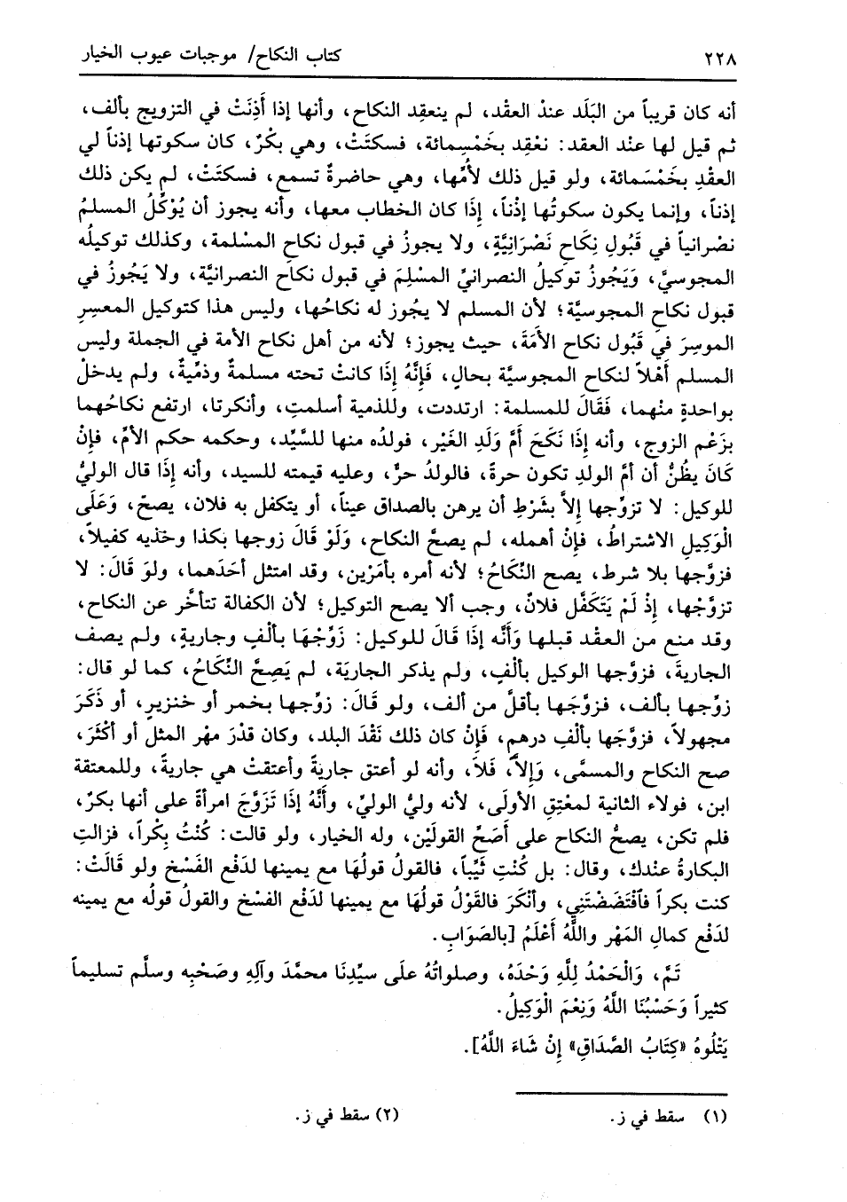 يَتْلُوهُ "كِتَابُ الصَّدَاقِ" إنْ شَاءَ اللهُ] (¬1).
