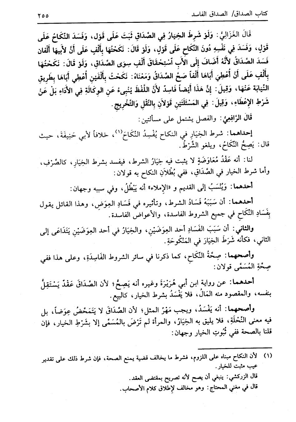 قَالَ الغَزالِيُّ: وَلَوْ شَرِطَ الخِيَارُ فِي الصَّدَاقِ ثَبَتَ عَلَى قَوْلٍ، وَفَسَدَ النِّكَاحُ عَلَى قَوْلٍ، وَفَسَدَ فِي نَفْسِهِ دُونَ النِّكَاحِ عَلَى قَوْلٍ، وَلَوْ قَالَ: نَكَحْتُهَا بِأَلْفٍ عَلَى أنَّ لأبيهَا أَلْفان فَسَدَ الصَّدَاقُ لأَنَّهُ أَضَافَ إِلَى الأبِ اسْتِحْقَاقَ ألْفٍ سِوَى الصَّدَاقِ، وَلَوْ قَالَ: نَكَحْتُهَا بِأَلْفٍ عَلَى أَنْ أُعْطِيَ أَبَاهَا أَلْفاً صَحَّ الصَّدَاقُ وَمَعْنَاهُ: نَكَحْتُ بِأَلْفَيْنِ أُعْطِي أَبَاهَا بِطَرِيقِ النِّيَابَة عَنْهَا، وَقِيلَ: إِنَّ هَذَا أَيْضاً فاسِدٌ لأَنَّ اللَّفْظَ يُنْبِئُ عَنِ الوِكالَةِ في الأدَاءِ بَلْ عَنْ شَرْطِ الإِعْطاءِ، وَقِيلَ: في المَسْئَلَتَيْنِ قَوْلاَنِ بِالنَّقْلِ والتَّخْرِيجِ.