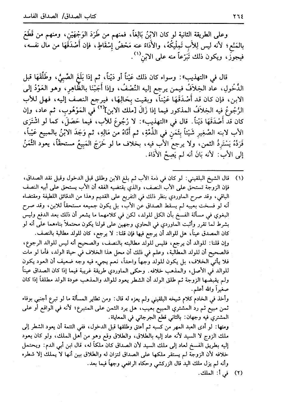(¬1) قال الشيخ البلقيني: لو كان في ذمة الأب ثم بلغ الابن وطلق قبل الدخول وقبل نقد الصداق، فإن الزوجة تستحق على الأب النصف، والذي يقتضيه الفقه أن الأب يستحق على أبيه النصف الباقي، وقد صرح الماوردي بنظر ذلك في التفريع على القديم وهذا من الدقائق اللطيفة ومقتضاه أنه لو فسخت بعيبه لم يسقط الصداق عن الأب، بل يكون جميعه مستحقاً للابن، وقد صرح البغوي في مسألة الفسخ بأن الكل للولد، لكن في كلامهما ما يشعر أن ذلك بعد الدفع وليس بشرط لما تقرر وأثبت الماوردي في الحاوي وجهين على قولنا يكون محتملاً بناءهما على أنه لو كان المصدق عيناً، هل للوالد أن يرجع فيها فإن قلنا: لا يرجع، كان للولد مطالبة بالنصف.