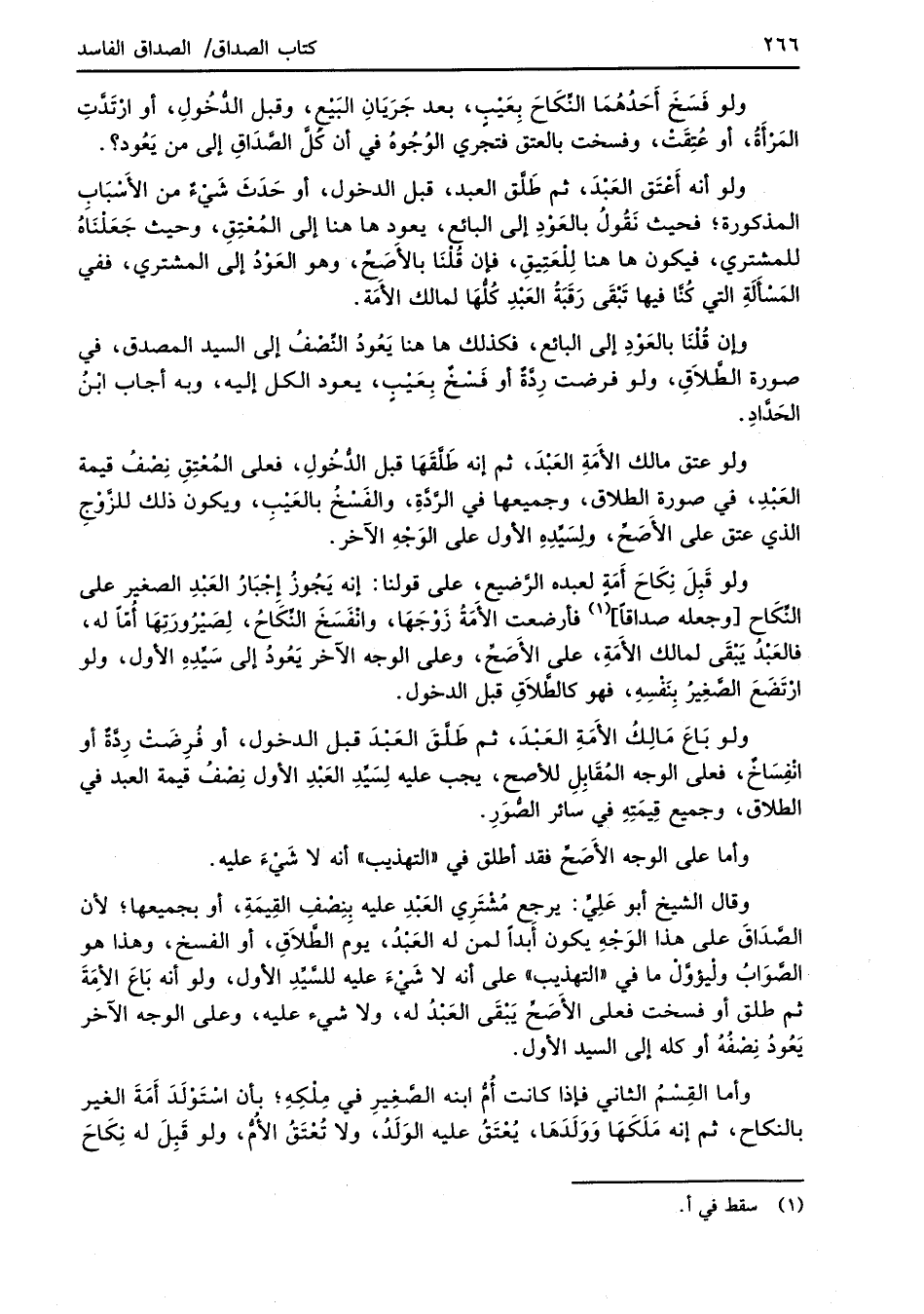وقال الشيخ أبو عَلِيٍّ: يرجِع مُشْتَرِي العَبْدِ عليه بِنِصْفِ القِيمَةِ، أو بجميعها؛ لأن الصَّدَاقَ على هذا الوَجْهِ يكون أبداً لمن له العَبْدُ، يوم الطَّلاَقِ، أو الفسخ، وهذا هو الصَّوَابُ ولْيؤوَّلْ ما في "التهذيب" على أنه لا شَيْءَ عليه للسَّيِّدِ الأول، ولو أنه بَاعَ الأمةَ ثم طلق أو فسخت فعلى الأصَحِّ يَبقَى العَبْدُ له، ولا شيء عليه، وعلى الوجه الآخر يَعُودُ نِصْفُهُ أو كله إلى السيد الأول.