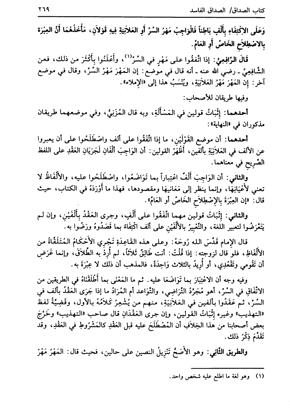 وفيه وجه أن الاعْتِبارَ بما تَوَاضَعَا عليه. ثم ما المَعْنَى بما أَطْلَقْنَاهُ في الطريقين من الاتِّفَاقِ في السِّرِّ، أهو مُجَرَّدُ التَّرَاضِي، والتَّوَاعد أم المُرَادُ ما إذا جَرَى العَقْدُ بألف في السِّرِّ، ثم عَقَدُوا بألفين في العَلاَنِيَةِ، منهم من يُشْعِرُ كَلاَمُهُ بالأول، وقَضِيَّة لفظ "التهذيب" وغيره إِثْبَاتُ القولين، وإن جرى العَقْدَانِ قال صاحب "التهذيب" وخَرَّجَ بعض أصحابنا من هذا الخِلاَفِ أن المُصْطَلَحَ عليه قبل العَقْدِ كالمَشْرُوطِ في العَقْدِ، وقد تَقَدَّمَ ذِكْرُ ذلك.