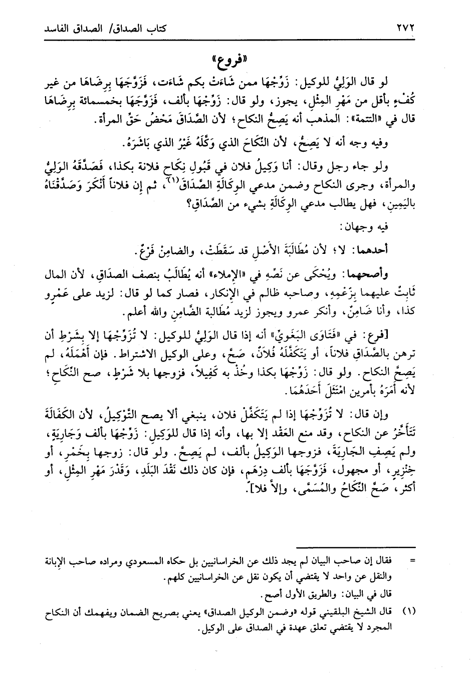 (¬1) قال الشيخ البلقيني قوله "وضمن الوكيل الصداق" يعني بصريح الضمان ويفهمك أن النكاح المجرد لا يقتضي تعلق عهدة في الصداق على الوكيل.