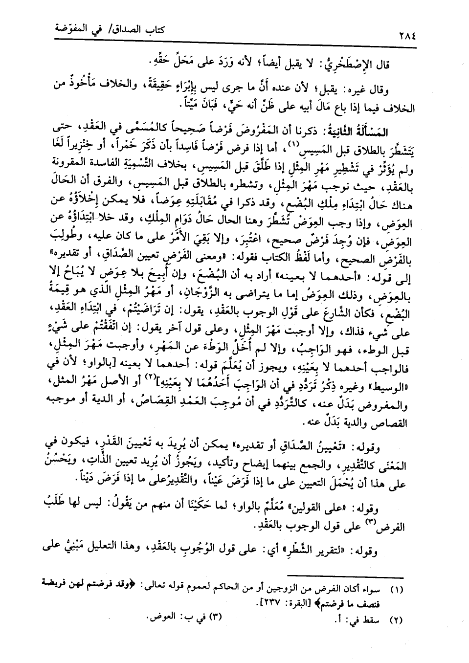 وقوله "تَعْيينُ الصَّدَاقِ أو تقديره" يمكن أن يُرِيدَ به تَعْيينَ القَدْرِ، فيكون في المَعْنَى كالتَّقْدِيرِ، والجمع بينهما إيضاح وتأكيد، ويَجُوزُ أن يُرِيد تعيين الذَّاتِ، وَيحْسُنُ على هذا أن يُحْمَلَ التعيين على ما إذا فَرَضَ عَيْنًا، والتَّقْدِيرُ على ما إذا فَرَضَ دَيْنًا.