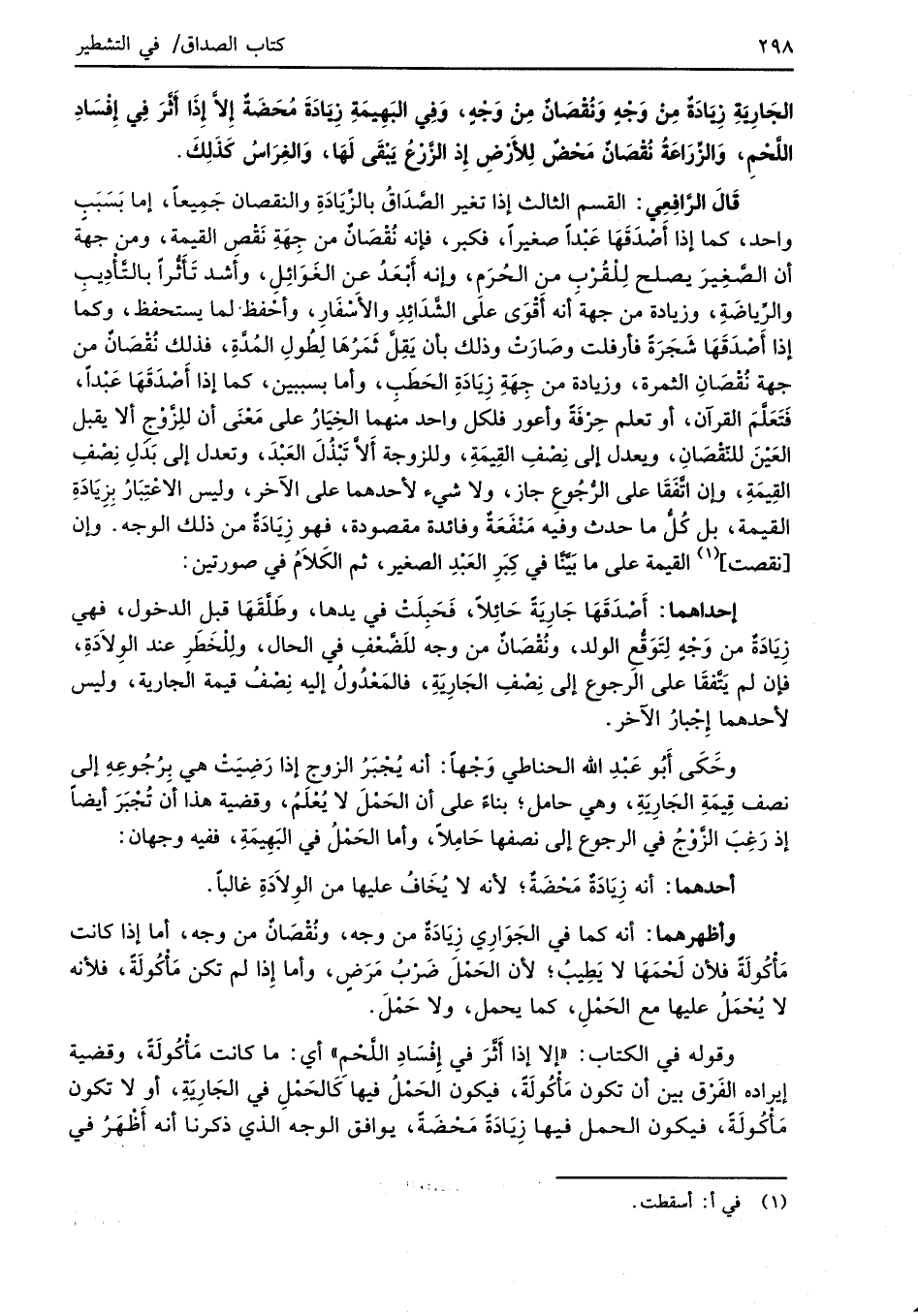 إحداهما: أَصْدَقَهَا جَارِية حائِلاً، فَحَبِلَتْ في يدها، وطَلَّقَهَا قبل الدخول، فهي زَيادَةٌ من وَجْهٍ لِتَوَقُّع الولد، ونُقْصَانٌ من وجه للَضَّعْفِ في الحال، ولِلْخَطَرِ عند الوِلاَدَةِ، فإن لم يَتَّفقَا على الرجوع إلى نِصْفِ الجَارَيةِ، فالمَعْدُولُ إليه نِصْفُ قيمة الجارية، وليس لأحدهما إجْبارُ الآخر.