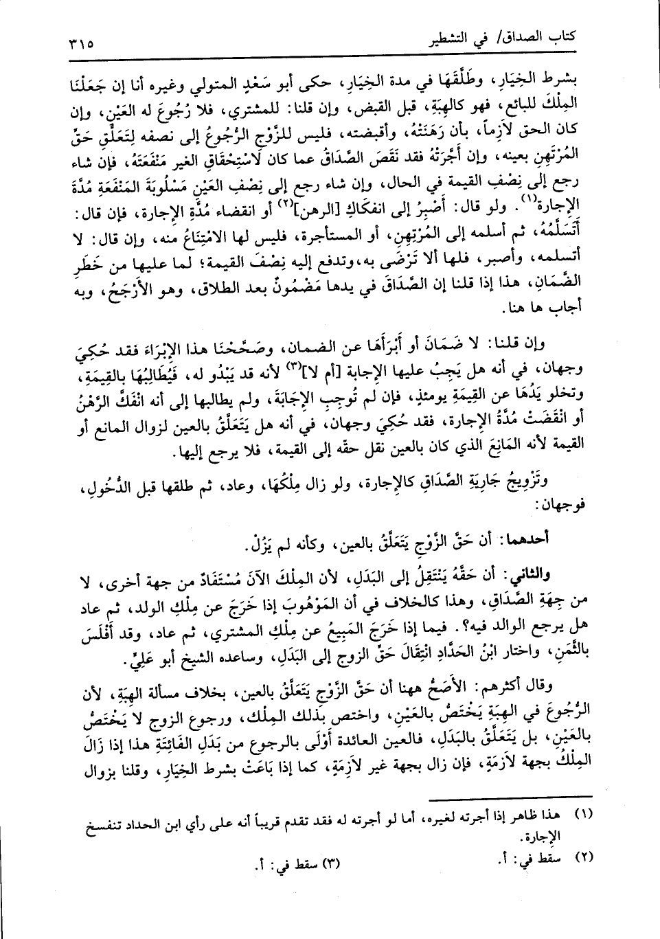 وقال أكثرهم: الأَصَحُّ هاهنا أن حَقَّ الزَّوْجِ يَتَعَلَّقُ بالعين، بخلاف مسألة الهِبَةِ؛ لأن الرُّجُوعَ في الهِبَةِ يَخْتَصُّ بالعَيْنِ، واختص بذلك المِلْك، ورجوع الزوج لا يَخْتَصُّ بالعَيْنِ، بل يَتَعَلَّقُ بالبَدَلِ، فالعين العائدة أَوْلَى بالرجوع من بَدَلِ الفَائِتَةِ هذا إذا زَالَ المِلْكُ بجهة لاَزمَةٍ، فإن زال بجهة غير لاَزِمَةٍ، كما إذا بَاعَتْ بشرط الخِيَارِ، وقلنا بزوال